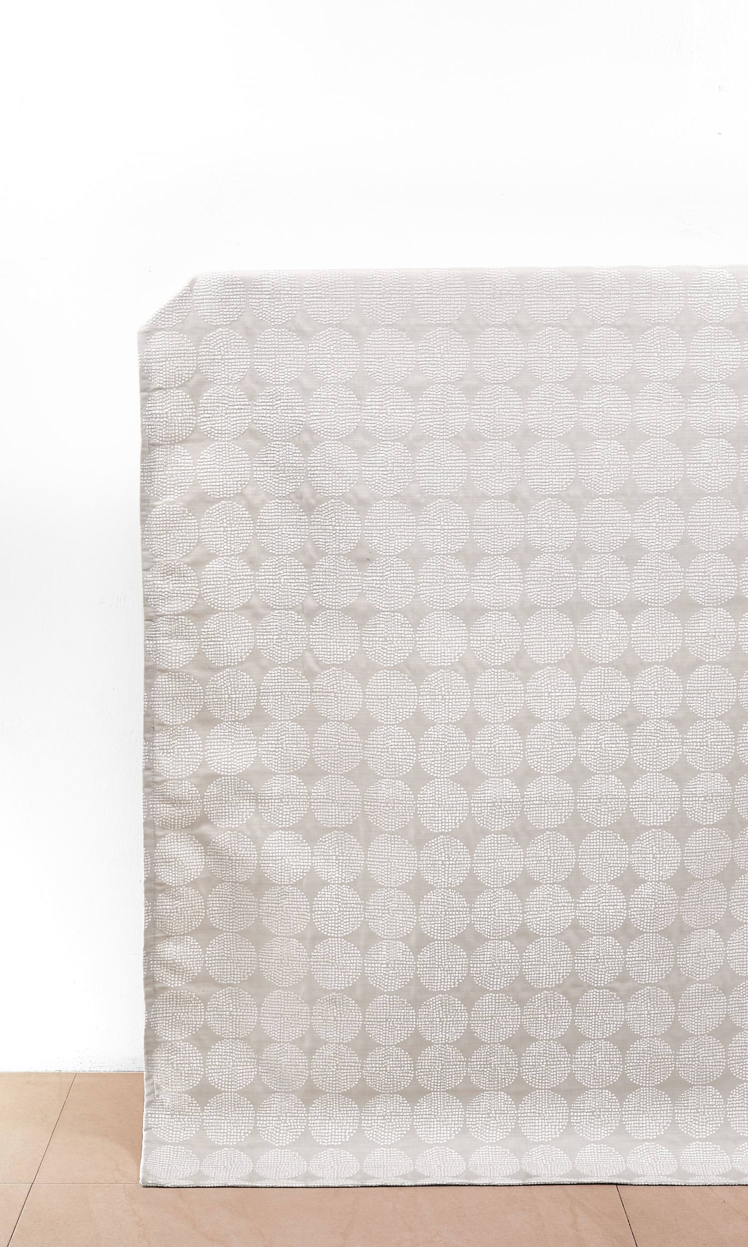With a sweeping layout of dotted circles inlaid in a tight grid, this fabric offers intricacy that is beautifully balanced by the soft palette of grey and white. Whether you want to add a playful moment to a kids' room or a subtle dose of interest to a modern monochrome setting, 'Frosted Globes' will strike the deal. Pair with a plain white sheer that accents the pattern and double up the soft charm.