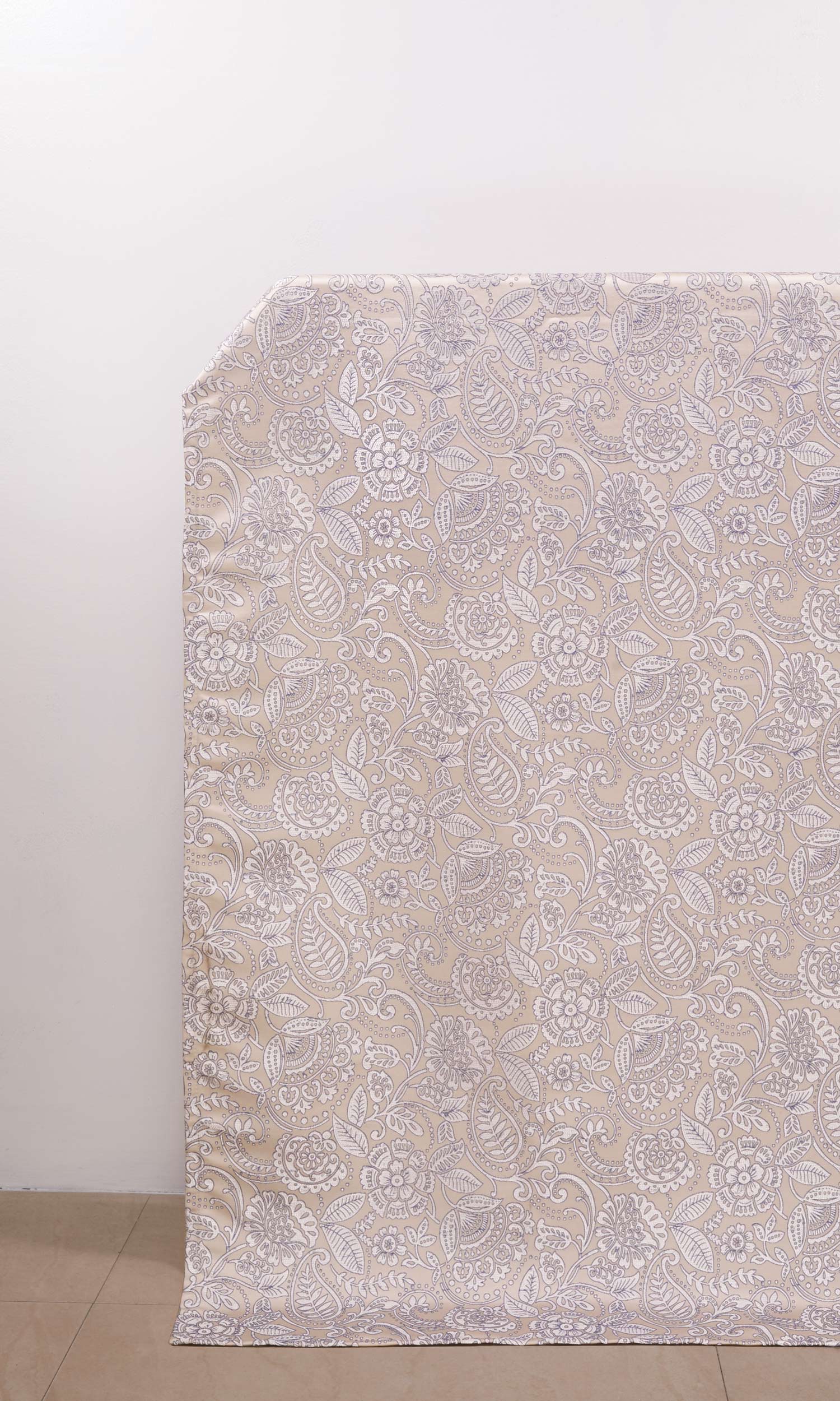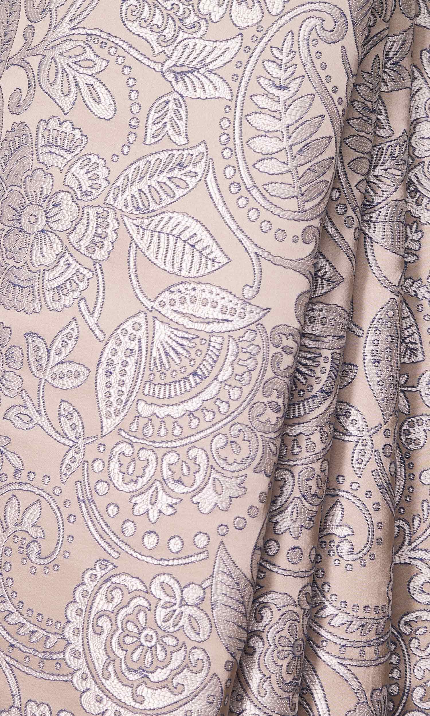 'Gleaming Garden' is a fetching piece that presents floral elegance with artistic beauty. With a sweeping layout of a floral design in a tone-on-tone neutral palette, this drapery is an enchanting ballet in lilting dulcet tones. Its swirly patterns seeped in a silvery tone are subtly accentuated by a contrasting blue outline. Trust this classic drapery to bring neutral hues to a traditional space or a textured variation in a monochrome setting.