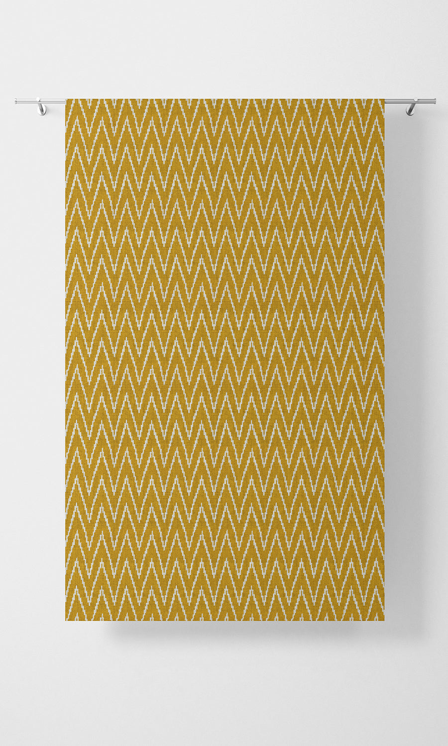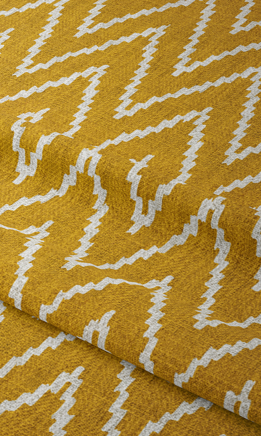 Think of 'Guarda' when you want to add a playful touch to your decor. Its pumpkin yellow brings a burst of colour and sunshine to the space while the zigzagging lines of the pattern embody movement, energy and drive. All in all, it will be an apt addition to casual spaces, kids' rooms and light-loving spaces like living rooms, sunrooms and kitchen patios.