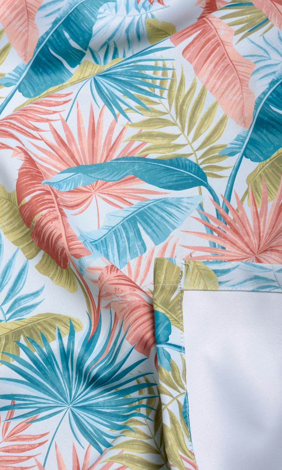 - The vibrance of its tropical leaves pattern evoking summer themes