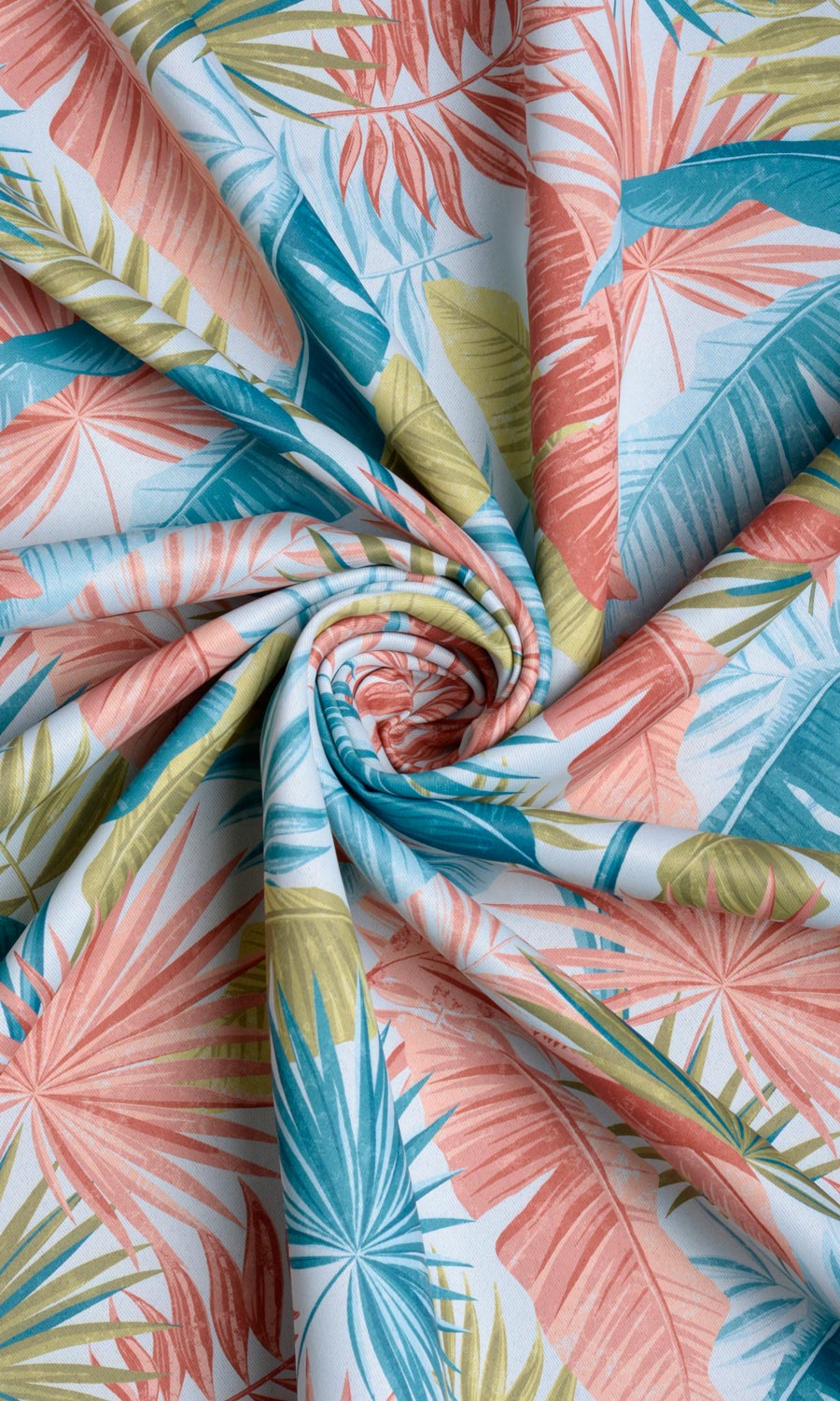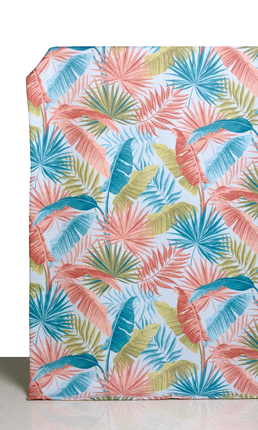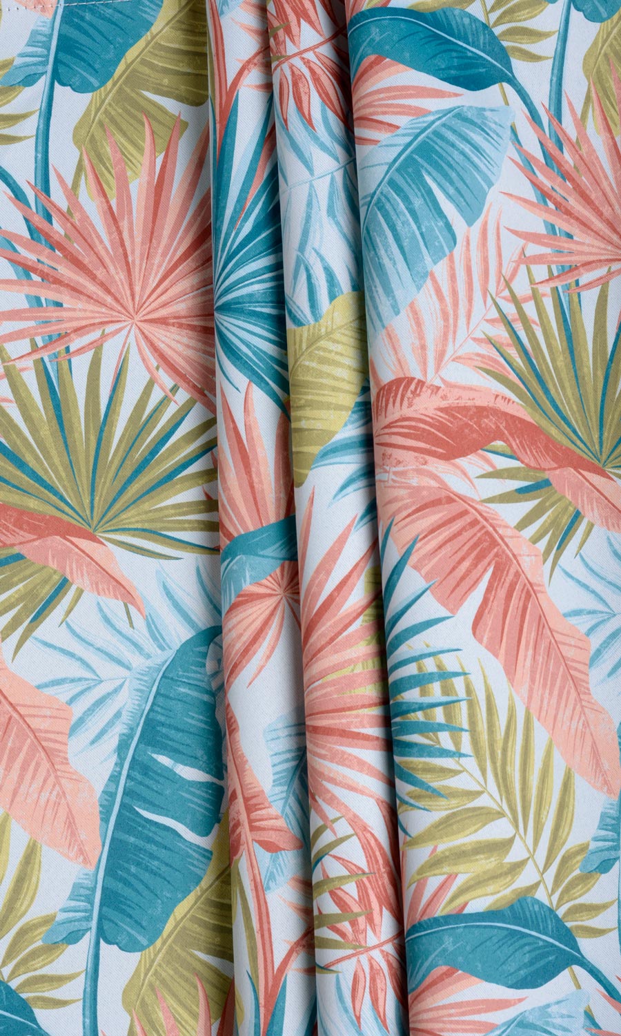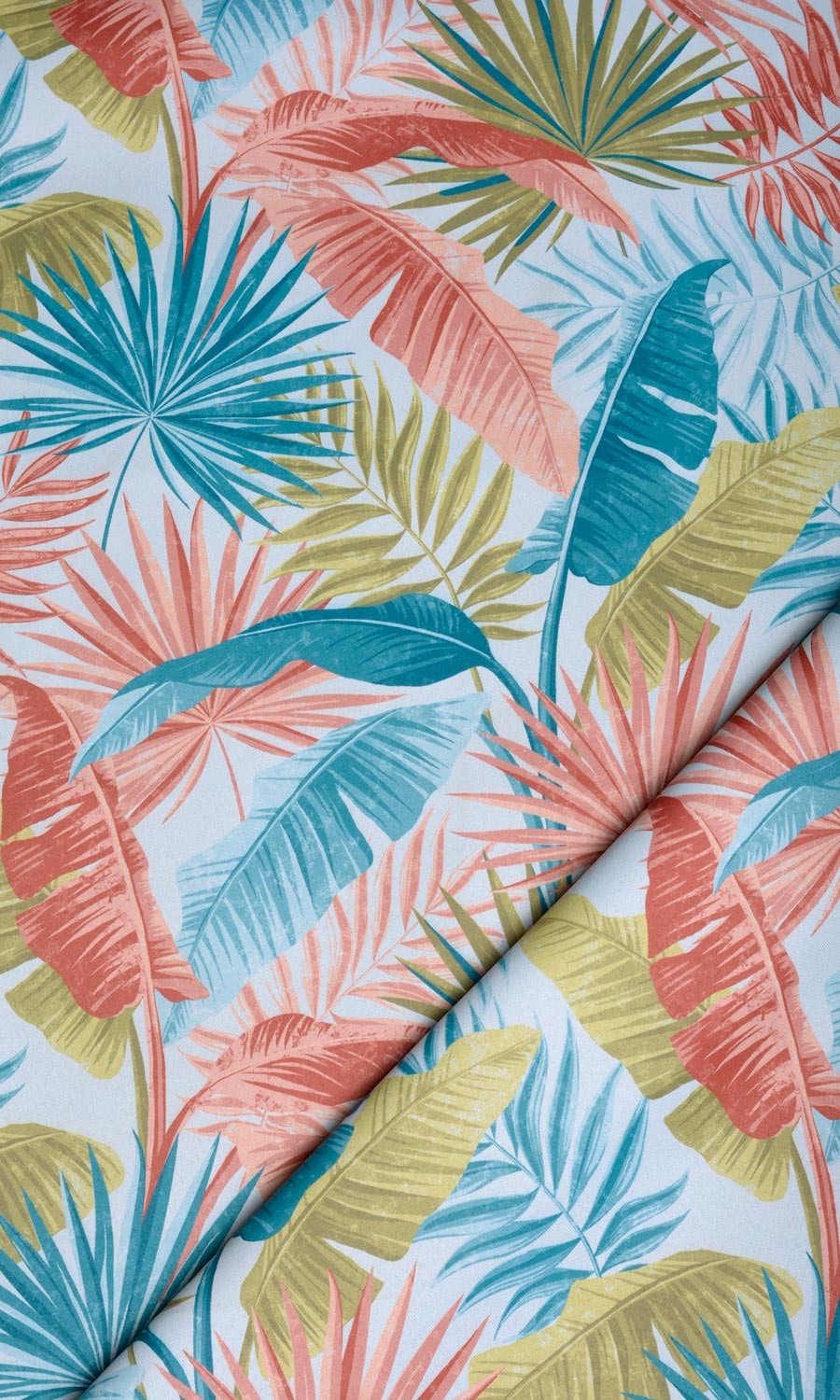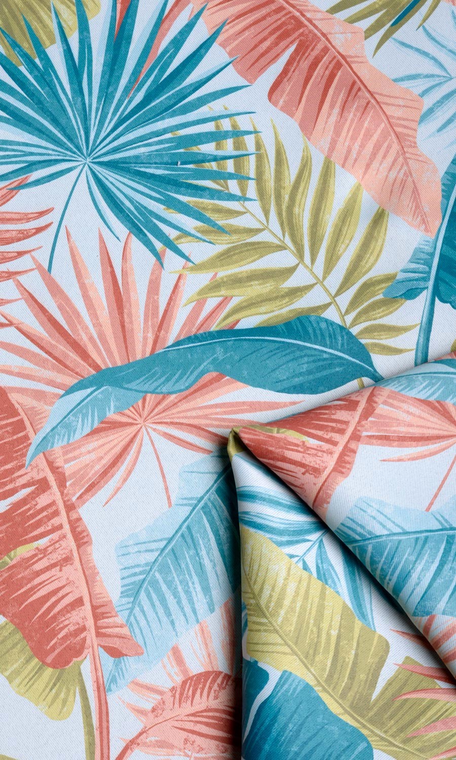 - The vibrance of its tropical leaves pattern evoking summer themes