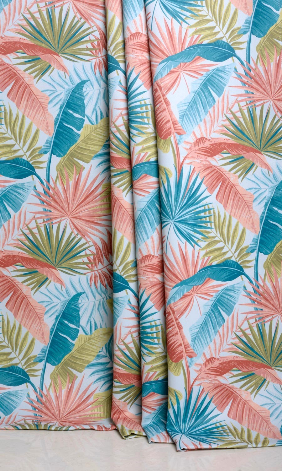 'Hara' is a festival of colour, pattern and nature themes that can transform any space instantly. Its exuberance can lift a neutral-toned space from its sterility while its cool colours can counterbalance a home over-indulged in warm hues. Whether in a country-style conservatory, an outdoor parlour or a jungle-themed kids' bedroom, this botanical print fabric will add visual interest and ground the decor on an outdoorsy theme.