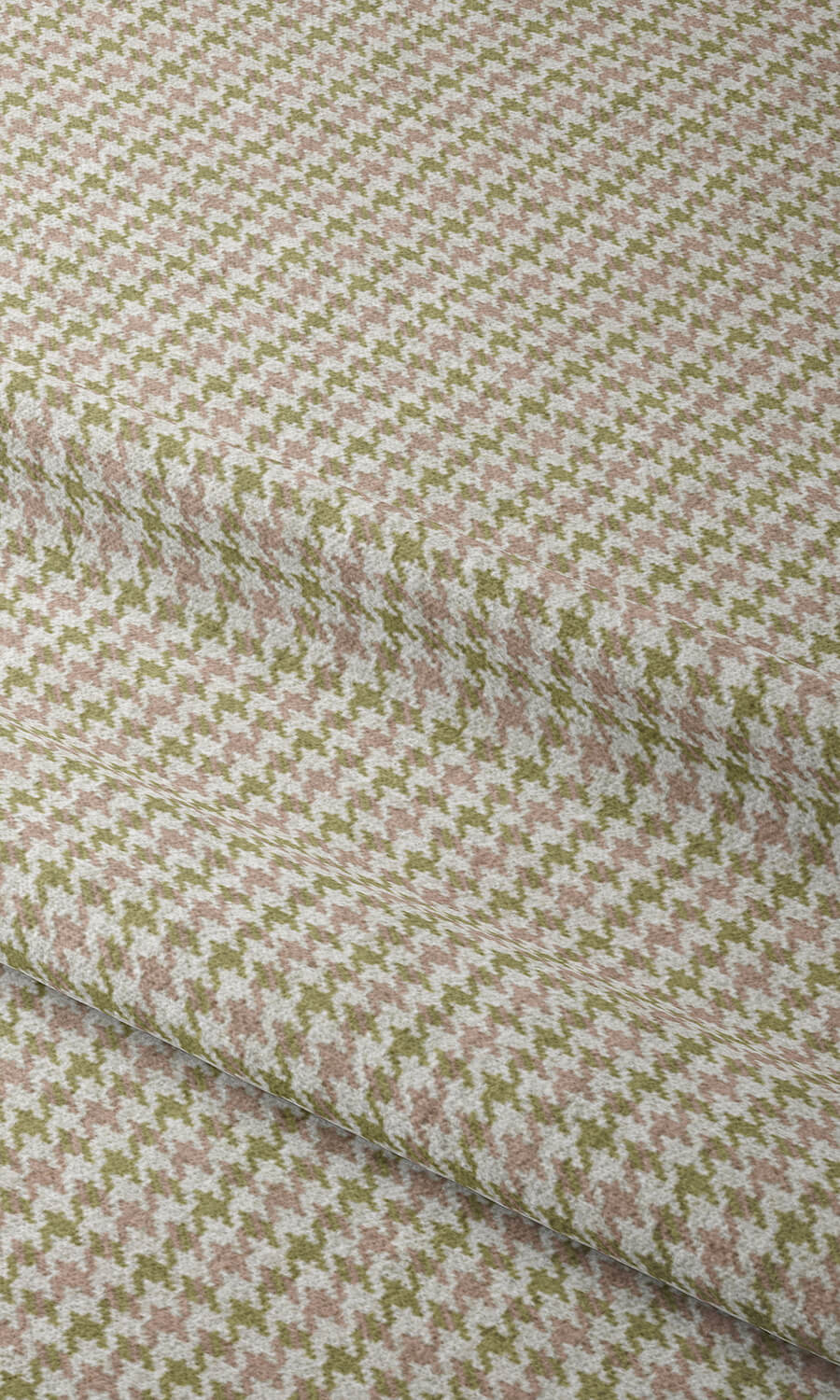 Speaking to the rustic essence of countryside English cottages, 'Herbland' depicts the houndstooth pattern in muted versions of green and pink that enhances the approachability and casual charm of the pattern further. Pair it with buffalo plaids, ticking stripes and dainty florals for a countrified appeal.