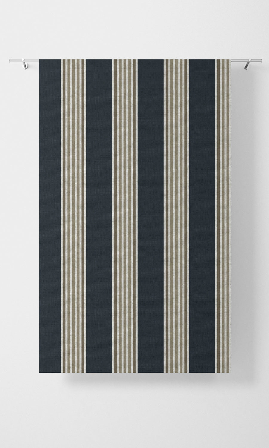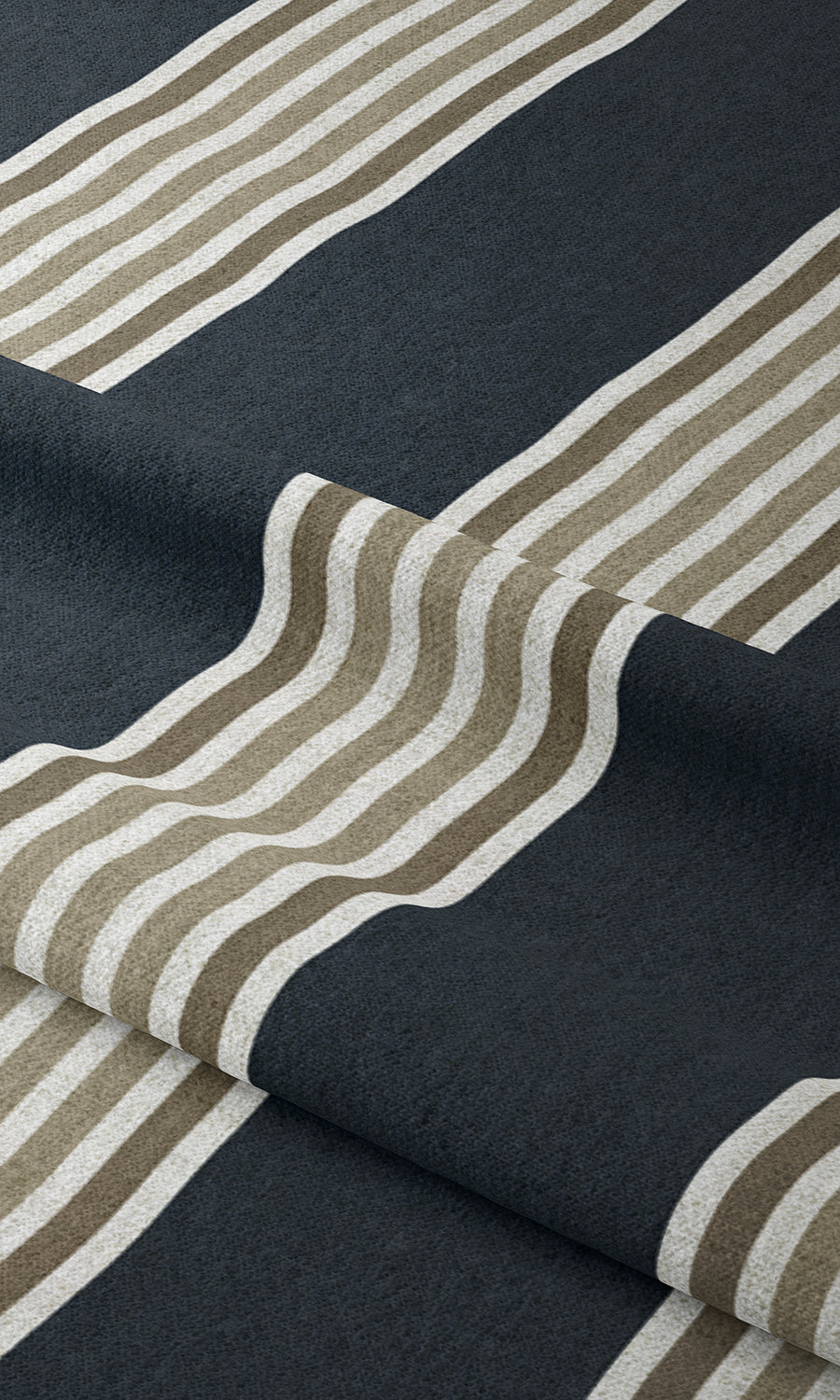 Blending bold and understated in perfect harmony, 'Horizon Sea' plays with scale and contrast to craft a look that’s both striking and easygoing. The strong blue awning stripes set the foundation, while the fine brown pinstripes weave in a grounding element, lending a subtle richness to the design. Whether evoking crisp coastal energy or complementing rustic, wood-accented interiors, this fabric adapts seamlessly to your aesthetic vision.