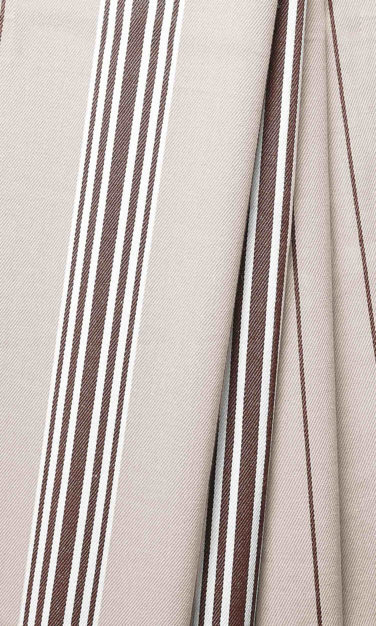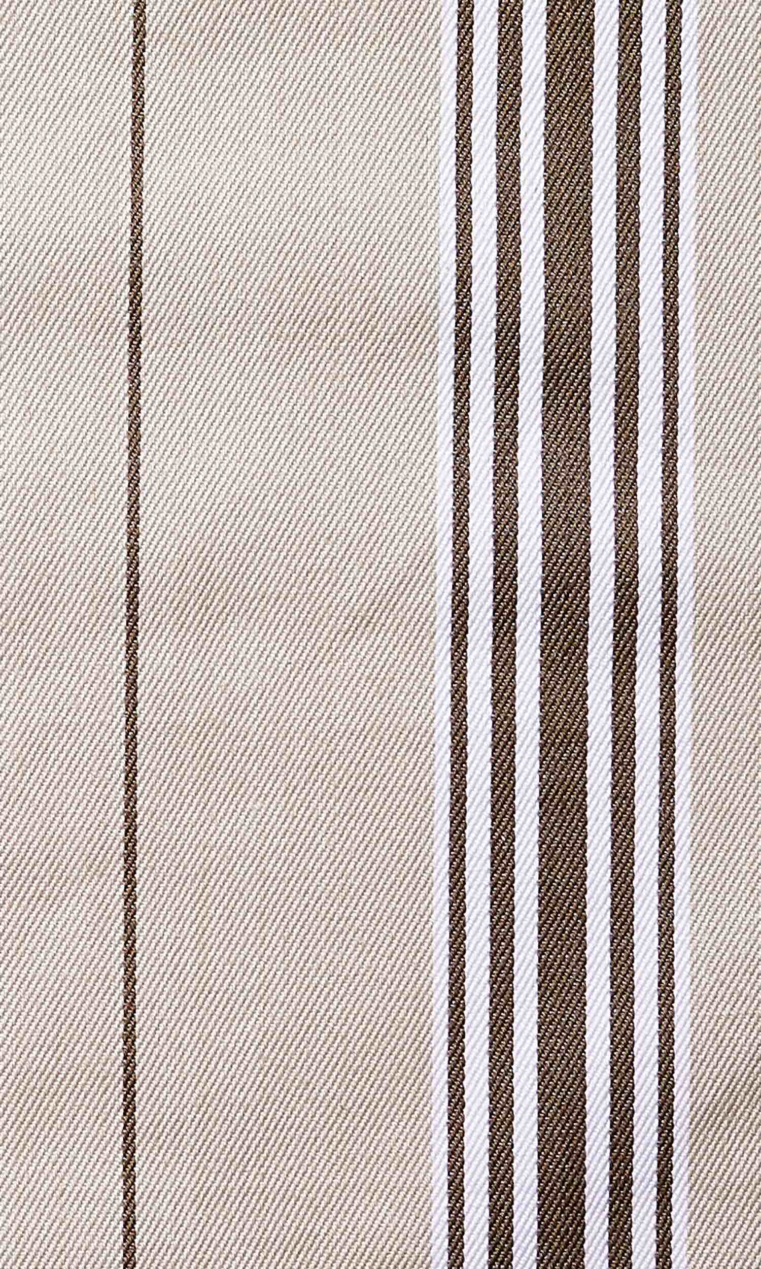 Not with the allure of loud colour or opulent lustre but with the quiet charm of natural colours and organic texture, 'Imperial Land' depicts the power of simplicity. This country-style striped fabric offers a simple pattern of stripes in a subdued palette of beige accented by brown that can round off a rustic home's bucolic themes. Pair with leather, burlap and jute accessories to carry forward the theme of natural materials and muted hues.