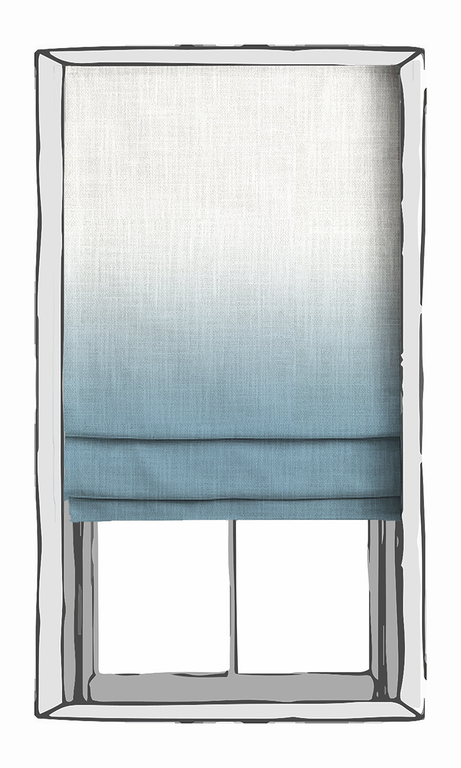-Consider the minimised look: Ombre's full progression of hues can only be visible when the roman blind is folded down to its full stretch. When folded up, you can see the top white portion and a short gather of the gradient colour. Factor in this aspect when you check for colour-cohesiveness between the blind and the overall palette of the room.