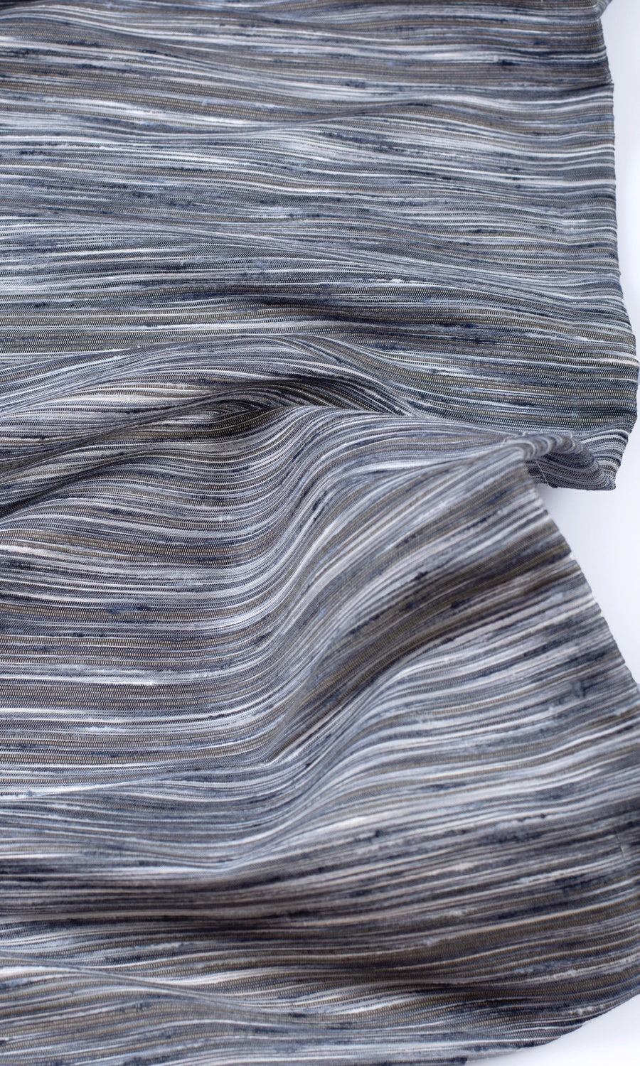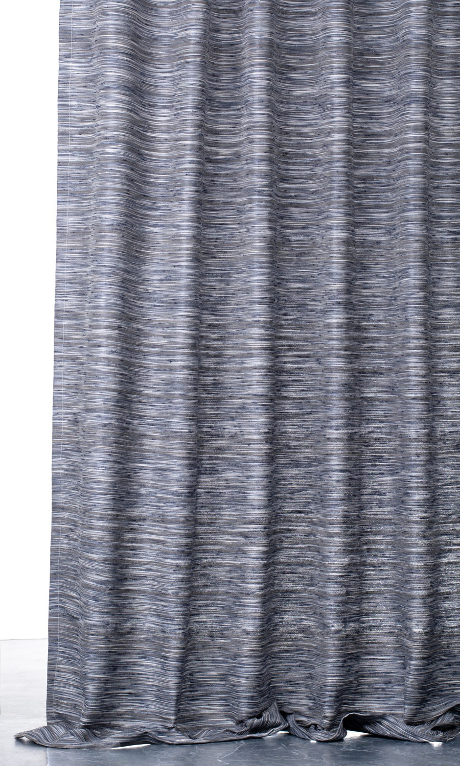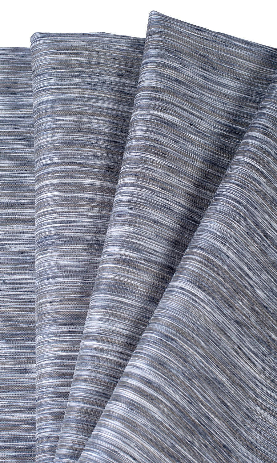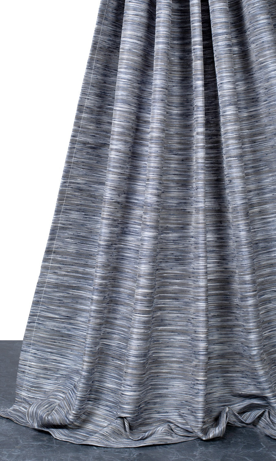 Timelessly elegant and effortlessly glamorous, 'Inglot' is a striped faux silk that plays with texture and light. Its resplendent greys, deepened and softened in a rhythmic flow by fine striations, offers an interplay of lustre and texture. Its graceful drape and soft glow are the perfect layer for modern interiors that embrace light, air and quiet luxury.