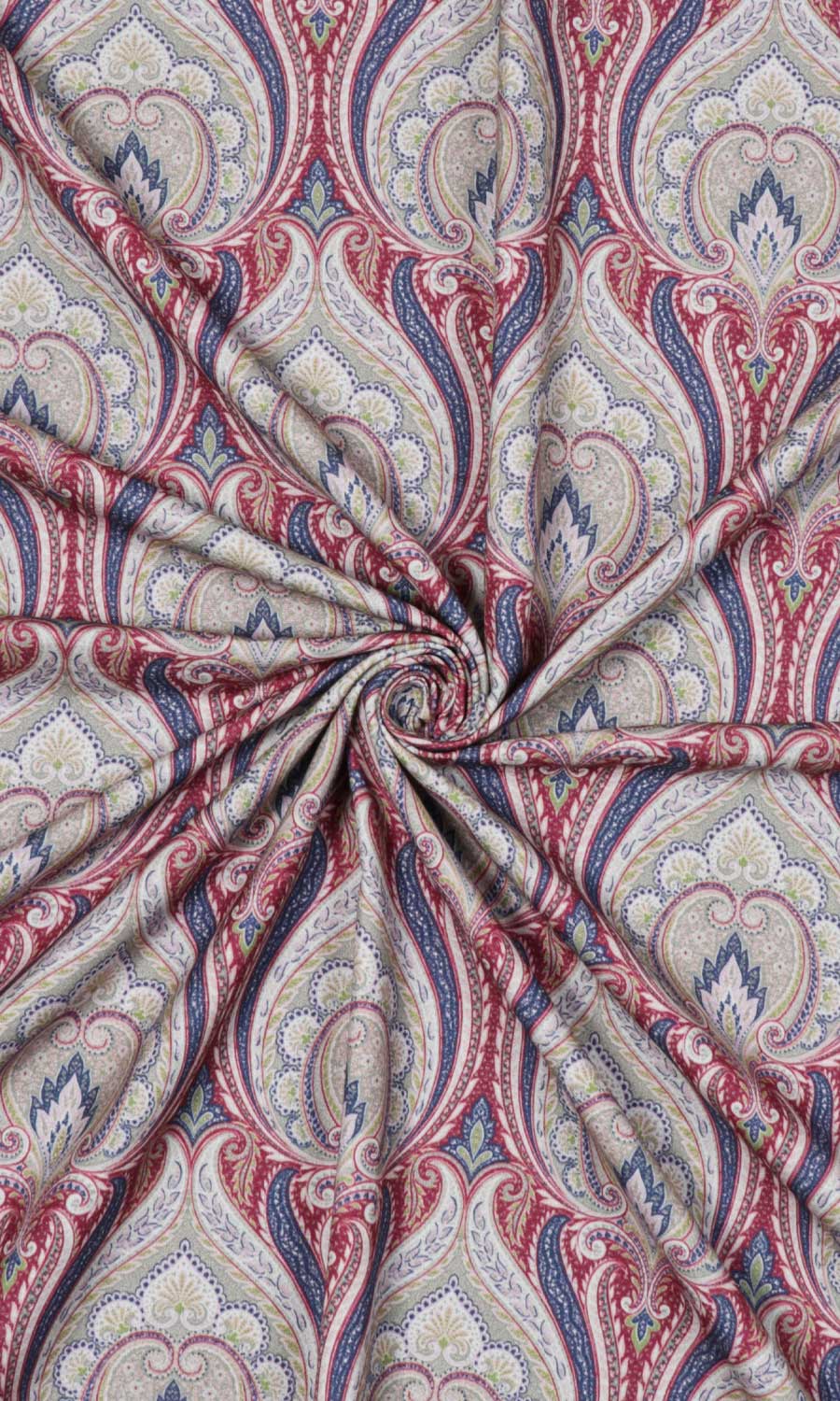 A bold damask that brings historic charm and classical artistry to the precincts of modern design with its textured, lived-in cotton weave. 'Intense Rose' etches out its ornate twirls and regal mystique in deep reds and blues, effortlessly bringing colour, drama and sumptuousness to any space. Bursting with potential for those who admire the power of pattern-play, this cotton damask is ideal for designs that blend tradition with personality, heritage homes that revel in classical detailing and eclectic designs indulgent in colour.