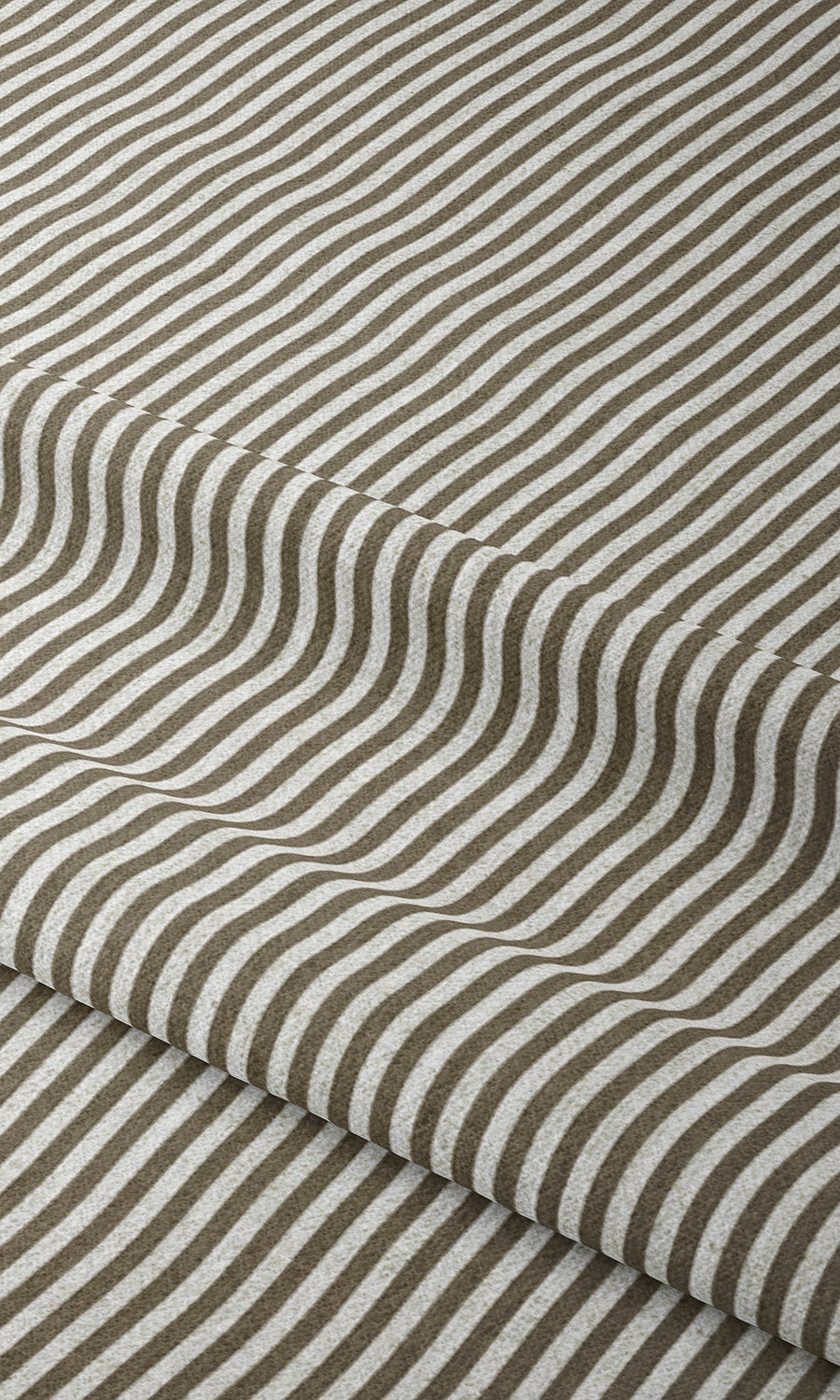 A nod to vintage confectionery packaging and old-world textiles, 'Khiva Sand' revives the timeless appeal of candy stripes with an earthy, grounded twist. The deep brown stripes create a bold yet inviting touch, making this fabric a perfect fit for cozy kitchens, countryside retreats, and breezy, light-filled spaces. Whether layered with rustic textures or paired with clean, contemporary lines, this fabric promises to seamlessly blend into both bucolic and modern interiors.