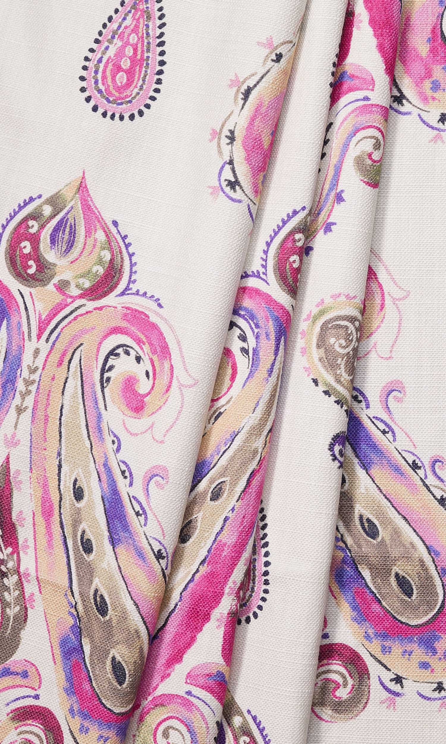 'Kolam' is a brilliant piece from our Brisbane collection of paisley/damask fabrics that comes to you with a default focal point recipe - a heartthrob pattern, grand scale and a richly flavoured palette. Its floating patterns stand out in the generous neutral space, making its statement boldly. Adorn your formal spaces and age-proof your little girl's room with 'Kolam's eye-catching glamour and sophisticated elegance.