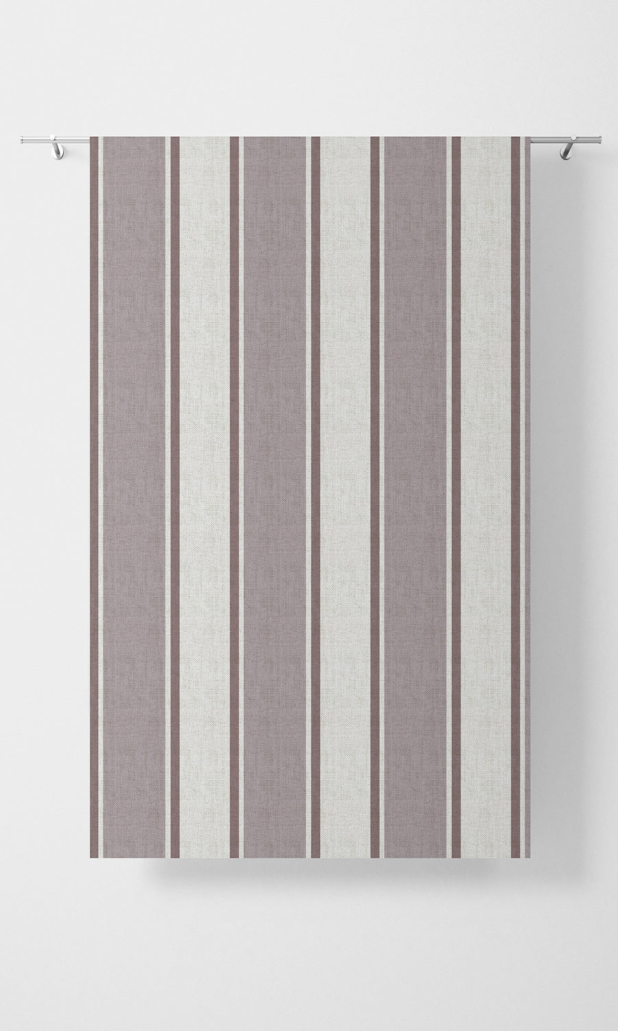 Featuring a rhythmic play of wide and narrow stripes in a rich plum and white palette, 'Lara Theme' is going to be your top choice if you are looking to make a statement with your window treatment. Wide bands stand with conviction, while finer lines weave in a touch of delicacy, creating a fabric that feels both commanding and composed. Borrowing its hue from twilight's stolen glow, it carries a depth that shifts effortlessly between nostalgia and modernity — a perfect choice for spaces that embrace a little drama with gracefulness and elegance.
