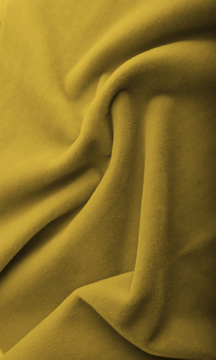 'Lemonade' is sunshine bottled into fabric — warm, decadent, and impossible to ignore. This yellow velvet has all the exuberance of a summer afternoon and the glamour of a Hollywood starlet in silk gloves inspired by Sleeping Beauty's yellow gown. It brings light not just in colour, but in spirit — playful in a nursery, bold in a modern lounge, and regal in vintage-inspired interiors. The nap catches and scatters the light in a way that feels almost cinematic, like walking into a room that's always glowing just a little. Pair it with deep jewel tones for drama, or soft neutrals for a hit of golden charm that refuses to dim.