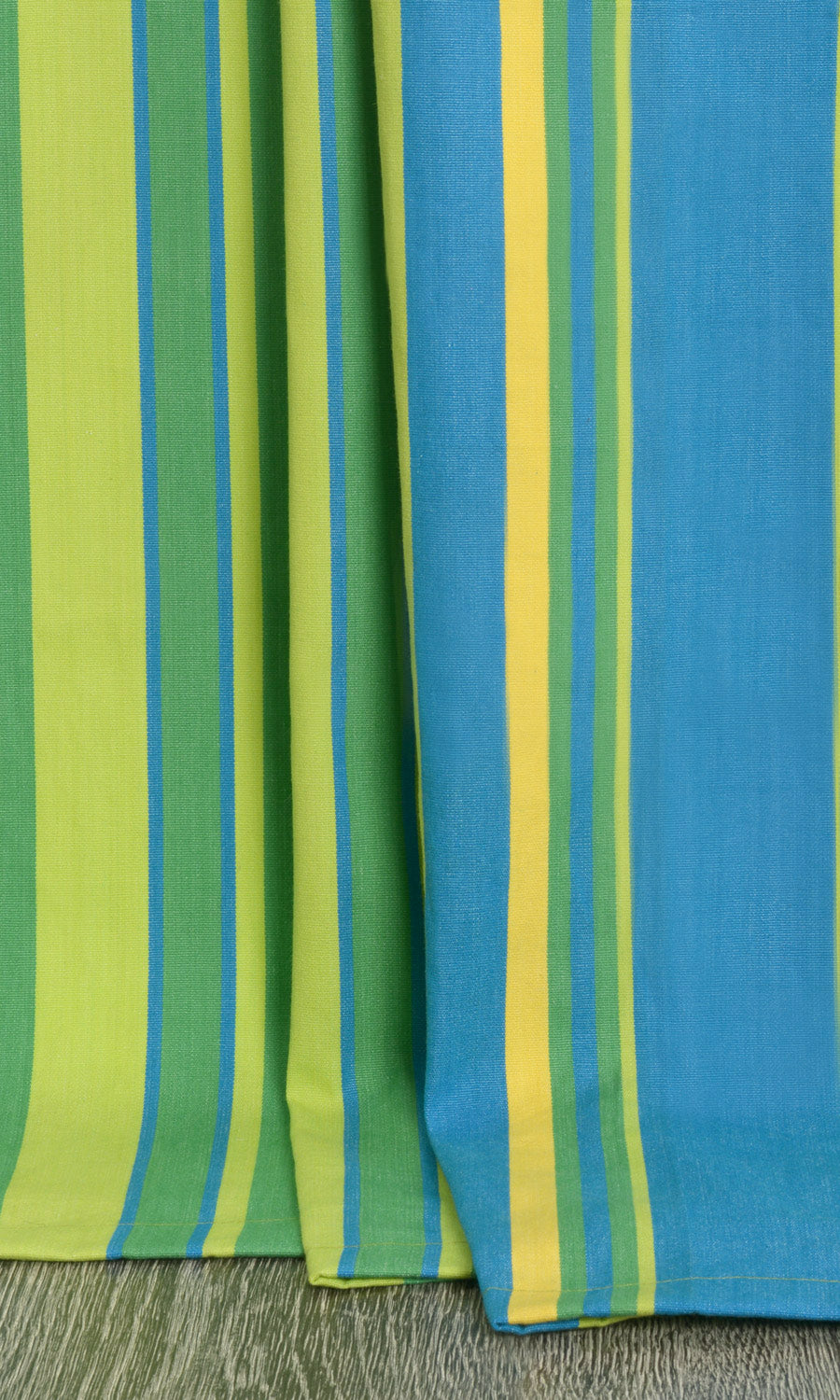 - The rejuvenating presence of bright lime green stripes contrasted by cool blues