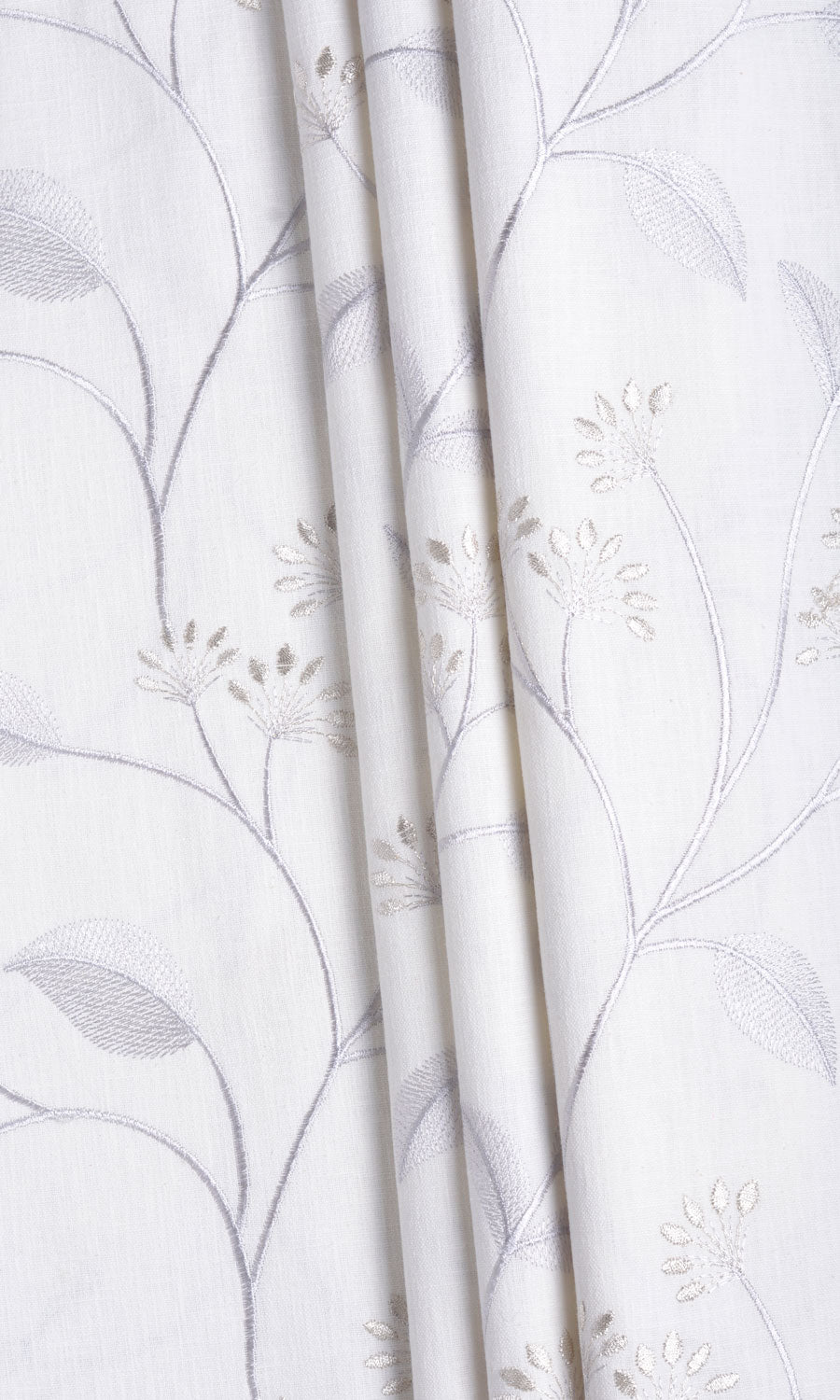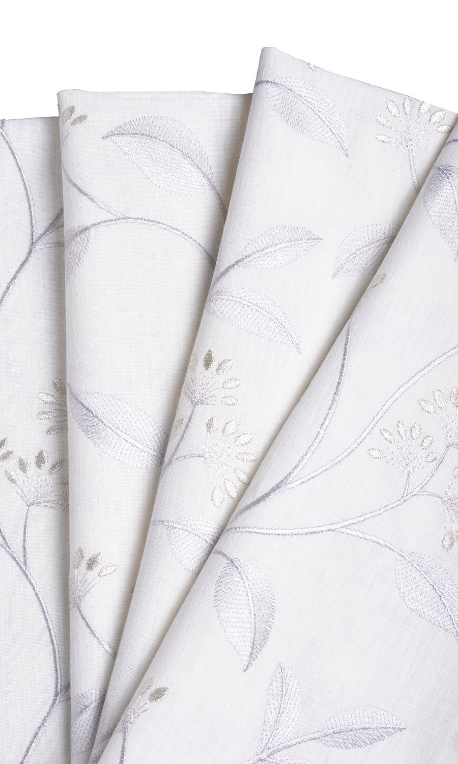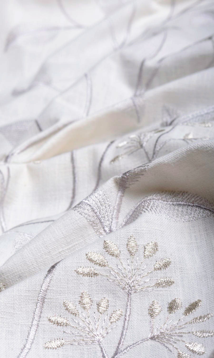Quiet like a whisper, soft as a feather, 'Lofty Dream' is poetry written in thread! This white linen adorned with cream floral embroidery is an ethereal beauty that may be best described as a floral shower frozen mid-air! Enriched by both the airy elegance of pure linen and the structural quality of polyester, this fabric promises to drape smoothly, fall elegantly and fold neatly.