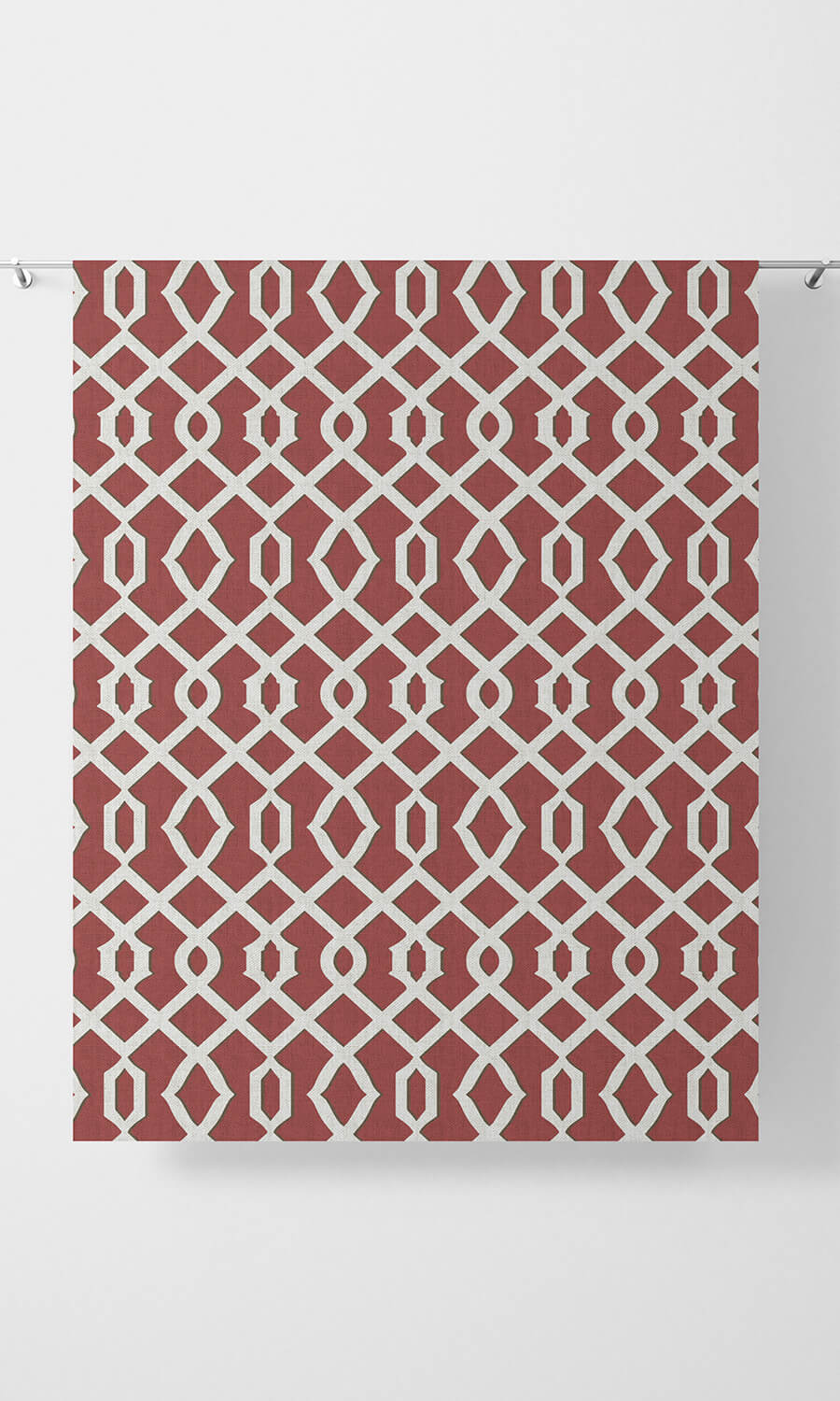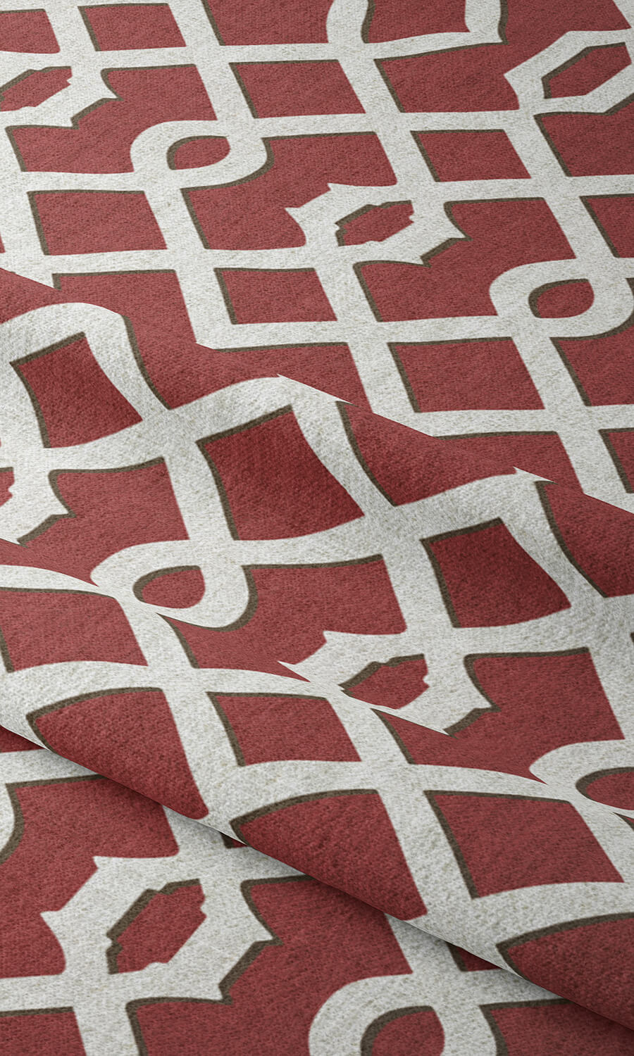 With a classic embellished trellis pattern, 'Lovin Posh' recounts the nostalgic beauty of flourishing English backyards festooned with flowering vines. It brings a heady mix of elegance and intensity with its deep crimson palette, while the white latticework adds just enough visual interest without overwhelming the space. Pair it with vintage finds and natural materials to complete a rustic country home or waterfront cottage.