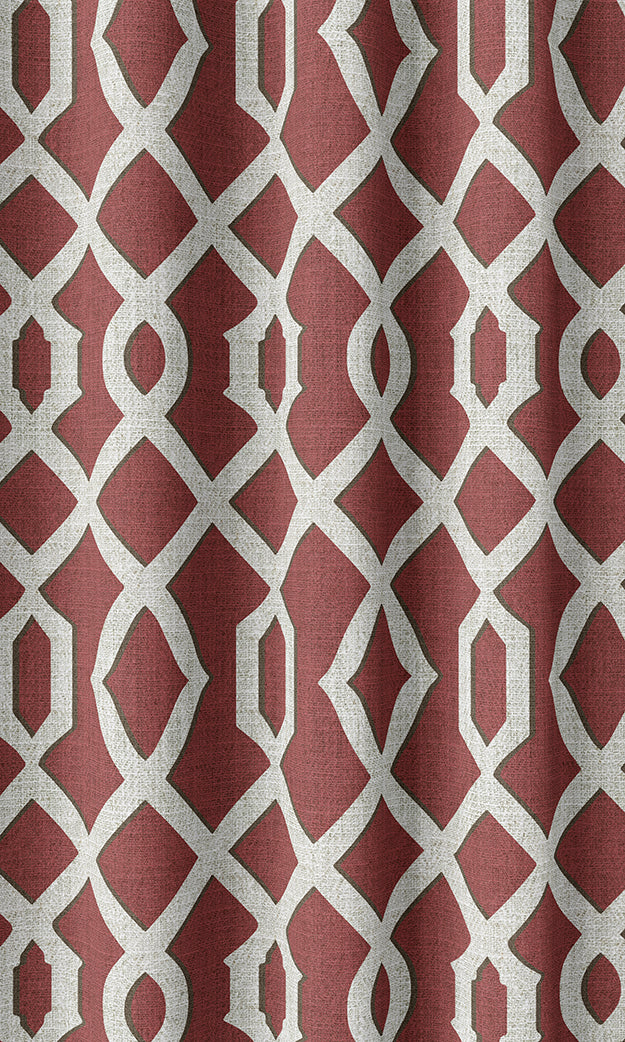 With a classic embellished trellis pattern, 'Lovin Posh' recounts the nostalgic beauty of flourishing English backyards festooned with flowering vines. It brings a heady mix of elegance and intensity with its deep crimson palette, while the white latticework adds just enough visual interest without overwhelming the space. Pair it with vintage finds and natural materials to complete a rustic country home or waterfront cottage.