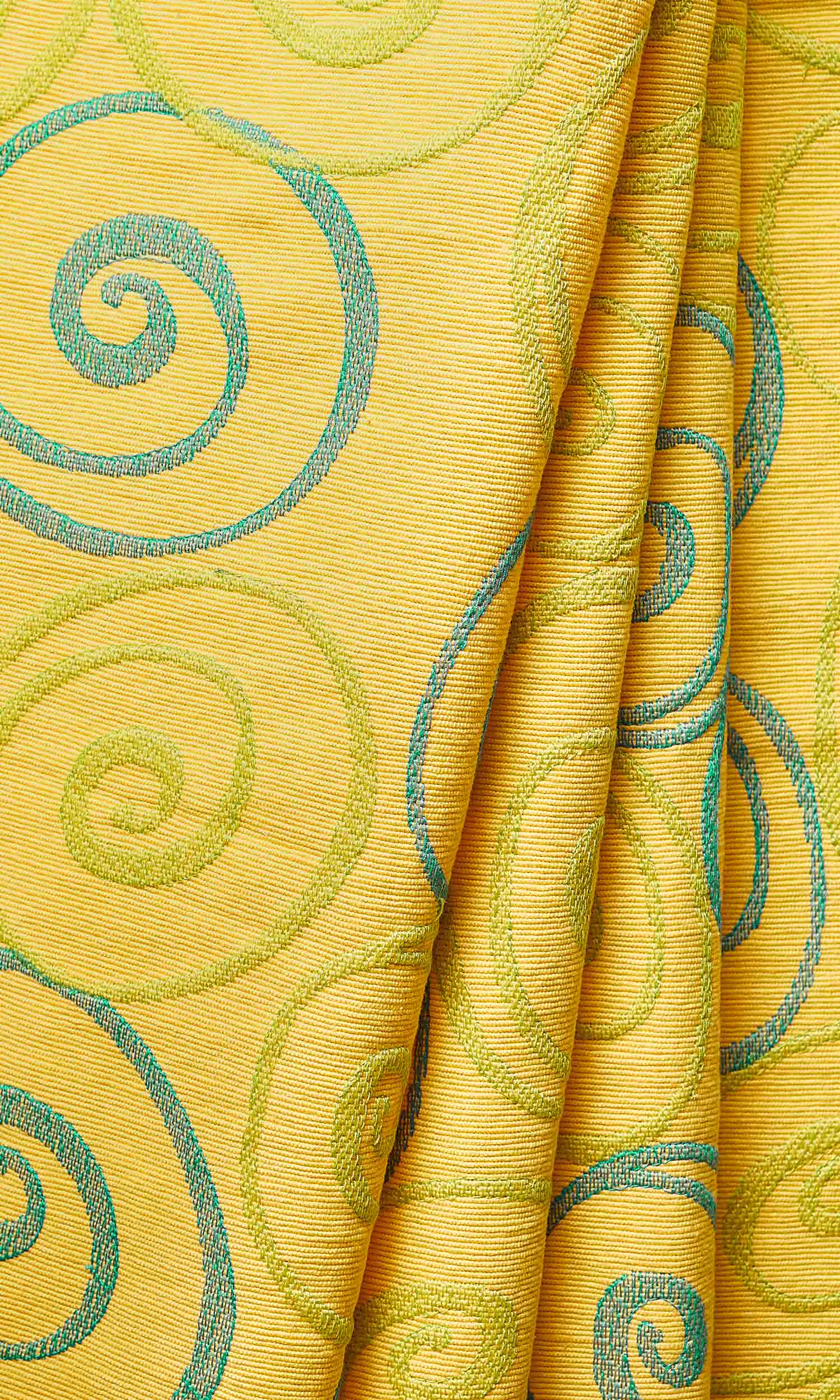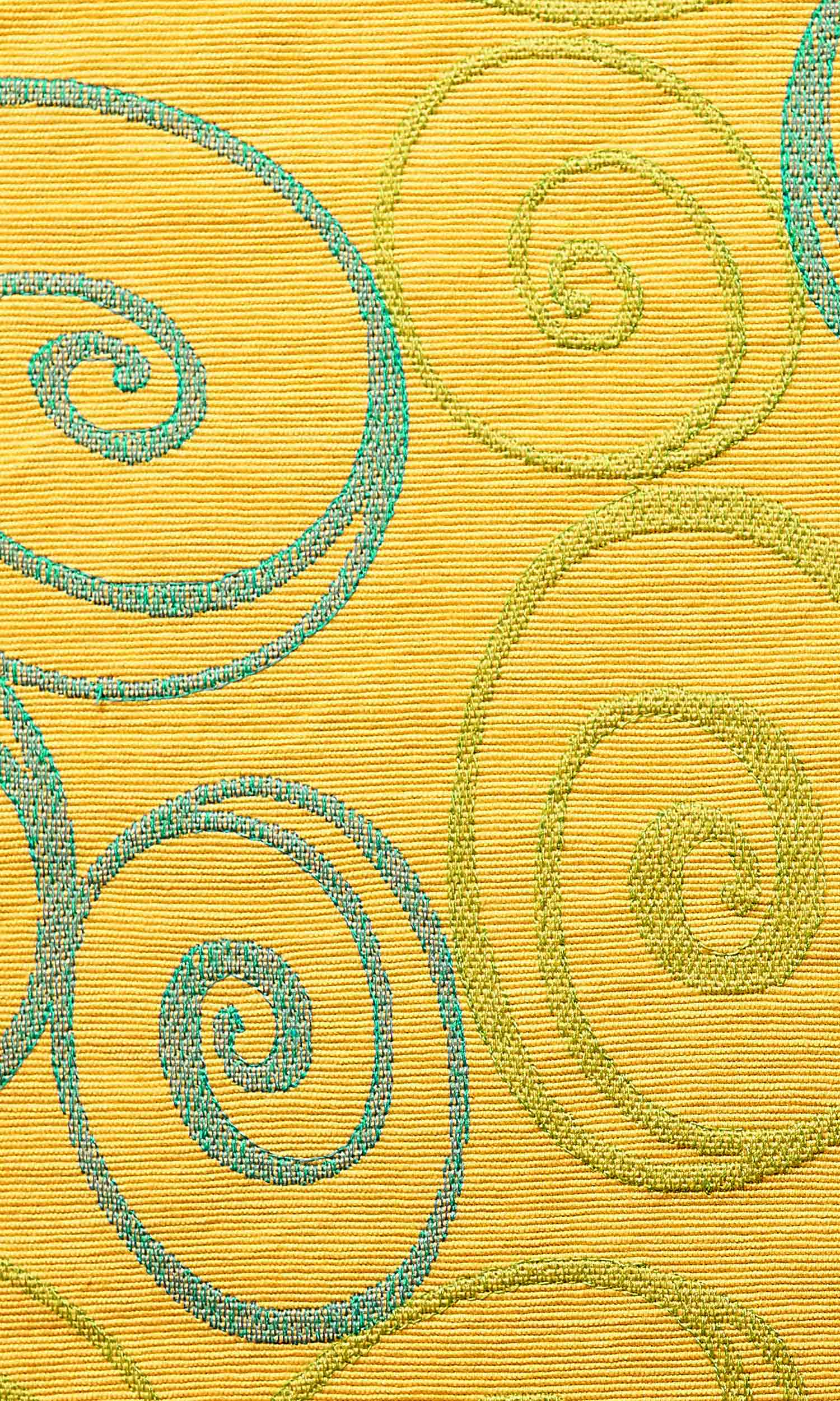 - Its sunshine yellow contrasted by light chartreuse and aqua blue accents in a rich woven texture