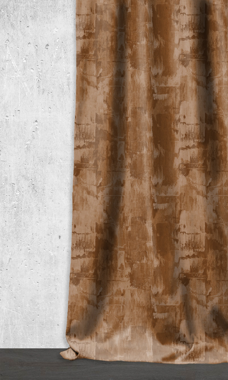 'Lucent Brass' features wide stripes of abstract pattern in a colour combination of sienna brown and tan brown. The organic beauty of its earthy hues and irregular paint strokes throwback to the natural beauty of striated tree barks and wet soil. This understated beauty comes with dimout functionality that makes it efficient at blocking light, noise and heat - just what you need for a long restful sleep.