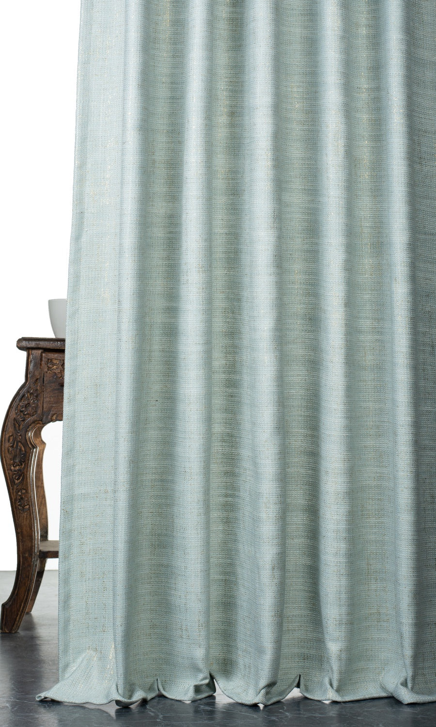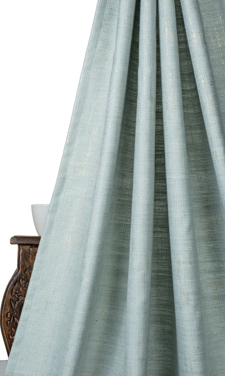 Not your ubiquitous plain blue fabric, but a bespoke beauty that comes with a regal overtone of glimmering gold hiding in its dabbled pattern! 'Luminous Peace' offers a sure-fire way to spruce up a breezy coastal abode with a tinge of glam. Enjoy this visual treat and crown your home with 'muted resplendence' while trusting its linen-blend composition for durability and dimensional stability.