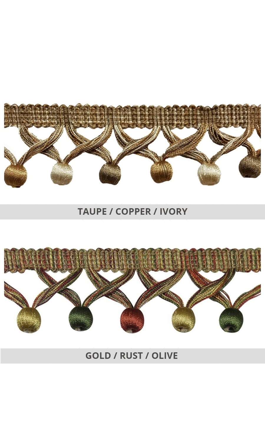 Each individual tassel in this trim is hand tied by expert artisans, making each bobble unique. We therefore expect very minor variance between trims and tassels.