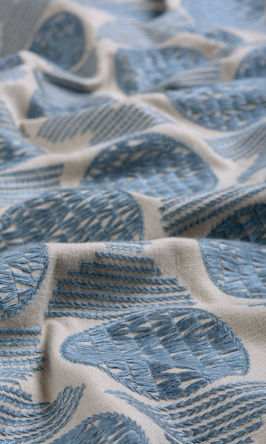 - Beautifully embroidered curvy motifs that look soft and light-hearted