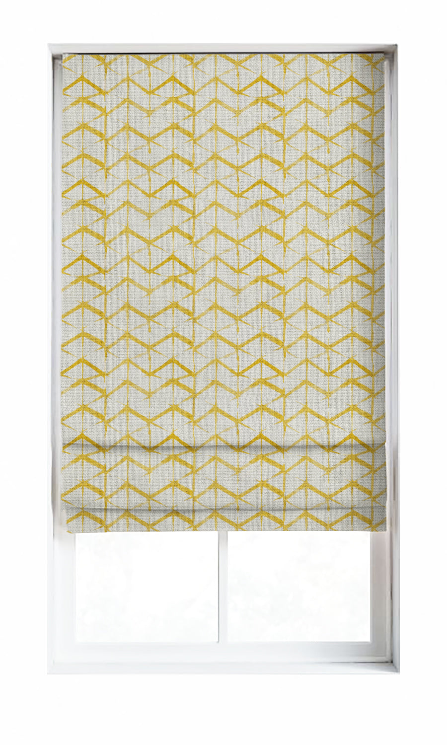 -Adorn with yellow trims: Enhance the casual charm of your geometric patterned roman blinds by decorating its bottom hem with whimsical ornaments like one of our yellow pom pom trims or fringe trims.