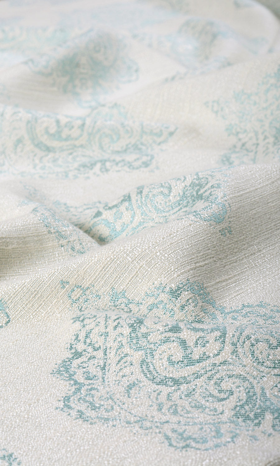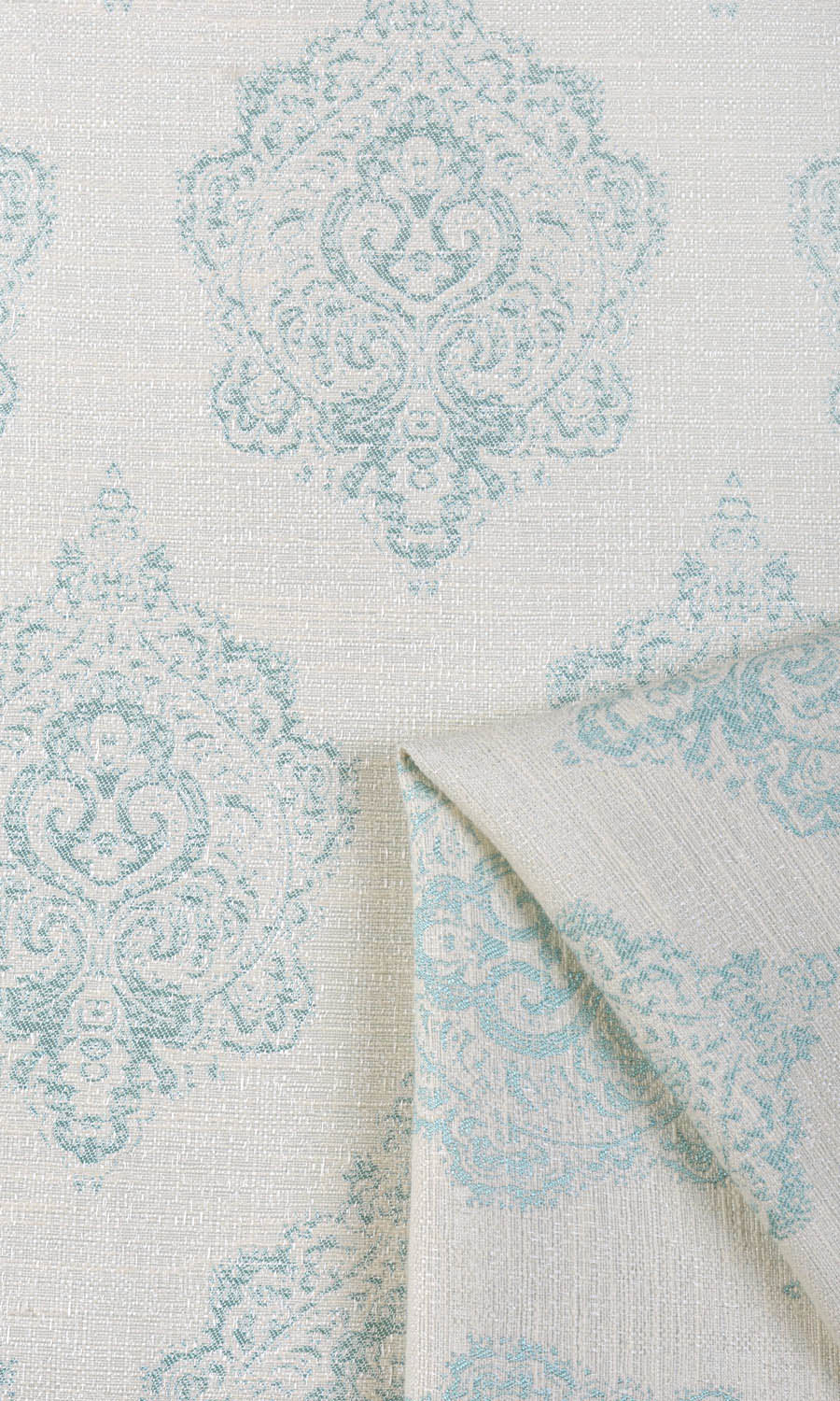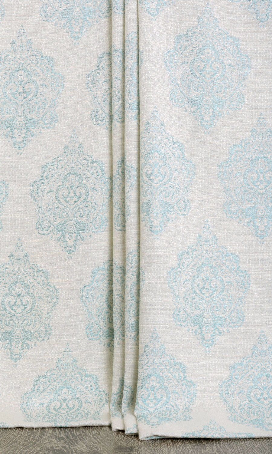 The epitome of grace - the classical blue-white damask - is all yours in the timelessly elegant 'Mint Crushed'. Featuring elaborate details and curlicued shapes, this vintage-style window dressing is an effortless focal point any formal traditional, transitional or eclectic space will desire. Its ritzy allure left untouched, it sheds some of its glory with its slightly washed-out effect and scattered layout, making it more versatile to mix with several patterns and palettes.