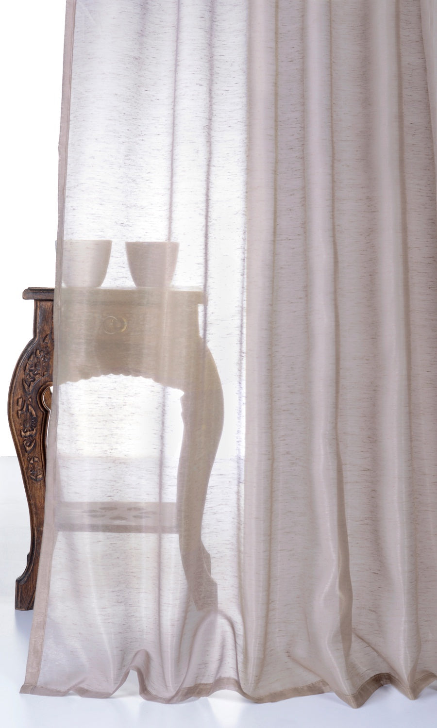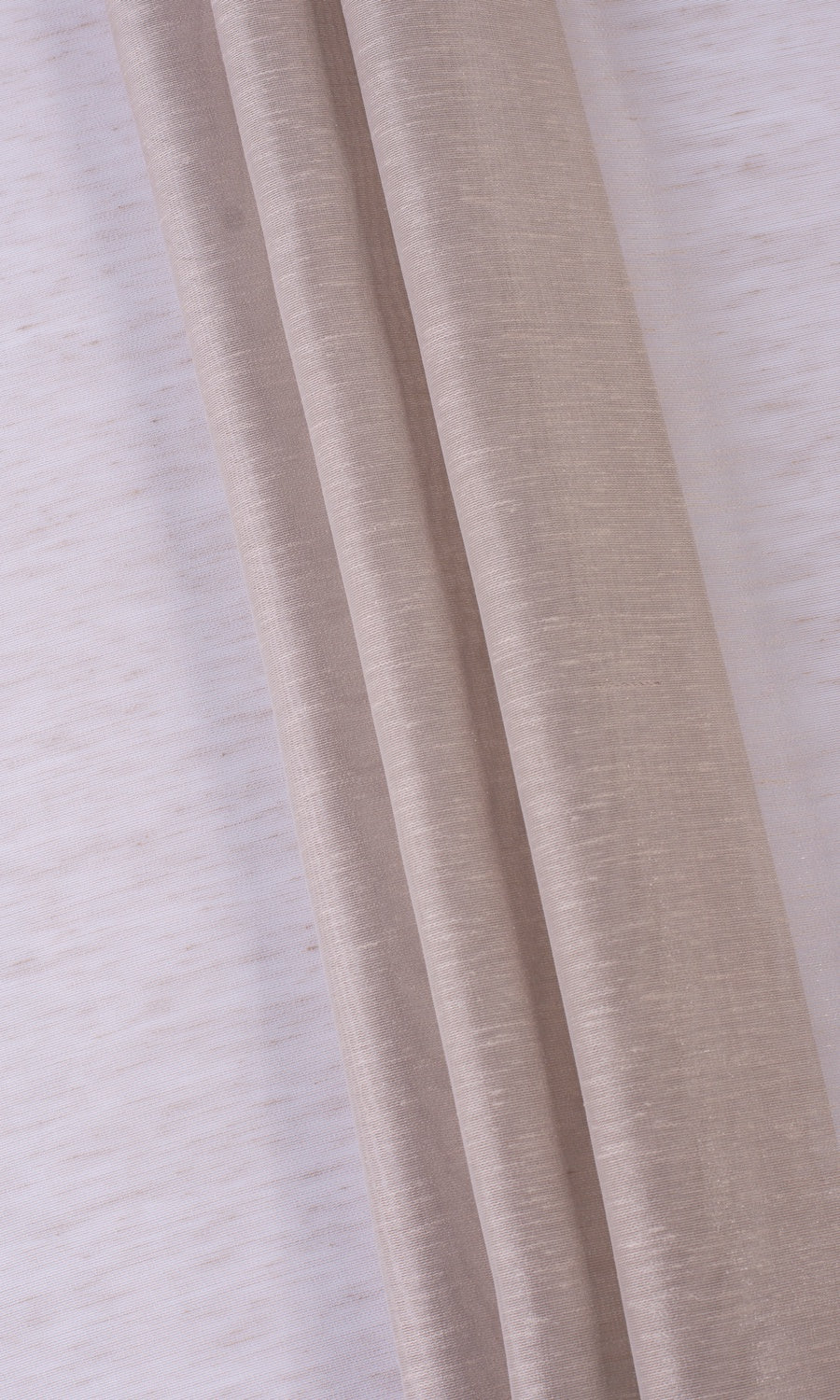 A breath of fresh air, a slice of sand swept away by desert dunes, 'Morn Dew' is all about serenity and quietude - warm, calm and effortlessly graceful. Perfect for spaces that crave hushed elegance or a touch of freshness, this fabric can put any room at ease instantly with its soothing beige tinged with delicate slubs and gentle sheen. Add to that the softened golden rays streaming through these sheer veils, and there's nothing more needed to turn any space into an idyllic haven.