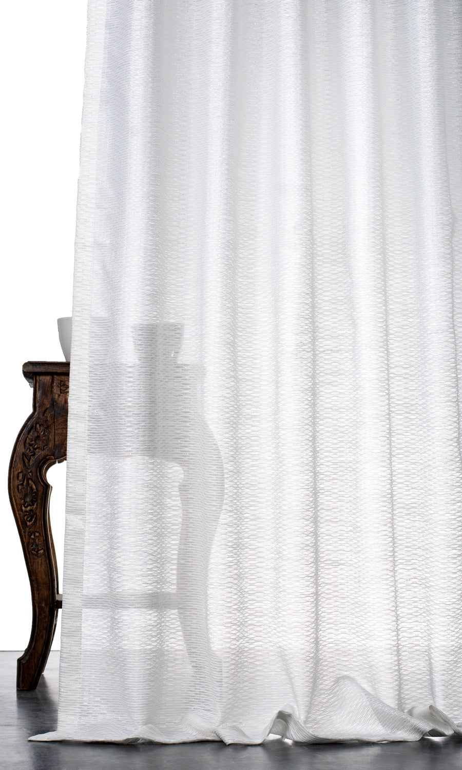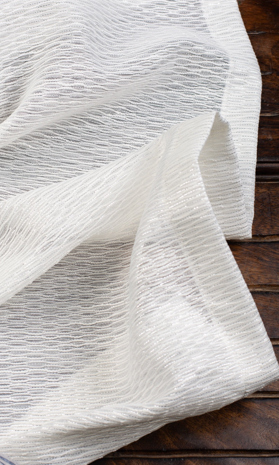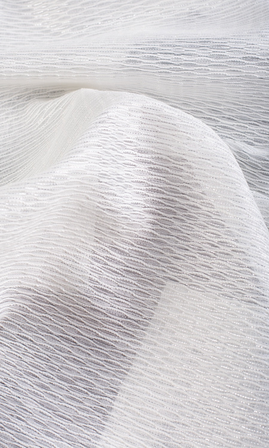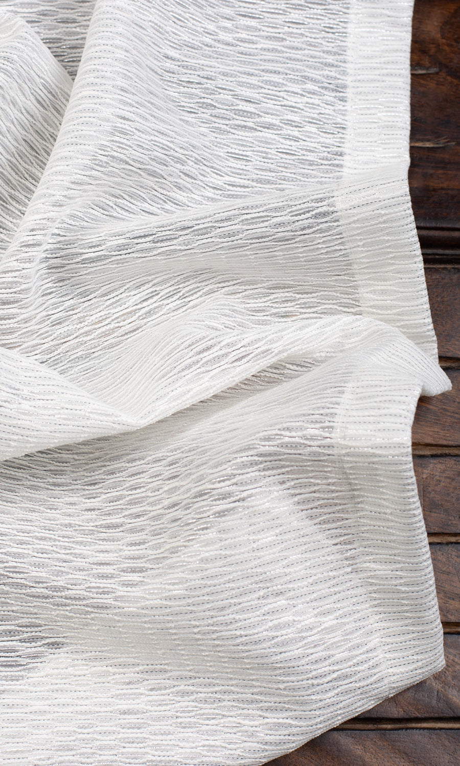 Light as a breath and textured like ripples on still water, 'Morning Cuppa' brings a poetic quiet to any room it graces. Its barely-there translucence allows daylight to drift in gently, casting a serene glow while keeping the world outside. Perfect for minimalist spaces, coastal homes and country cottages, this white sheer can be the final touch for any space that loves a touch of delicate texture and white lace.