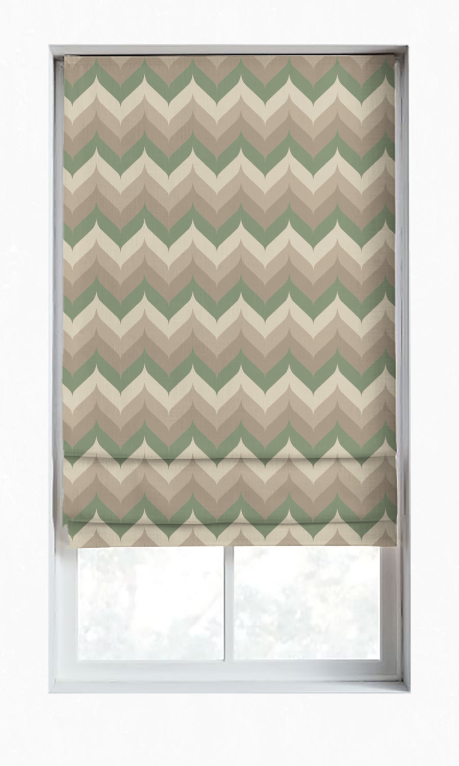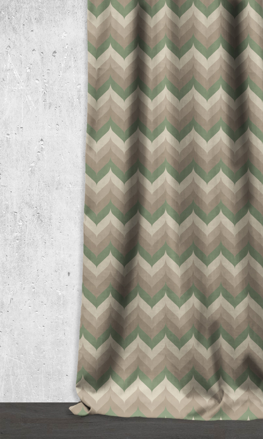 'Moss Bean' offers a contemporized version of the traditional chevron pattern in a blend of various shades of soft greys contrasted by a muted green. It is the perfect mix of sophistication and eclecticism for a home that mixes and matches patterns of various eras and styles. Enjoy this visual enrichment along with enhanced privacy and light control ensured by its dimout functionality.