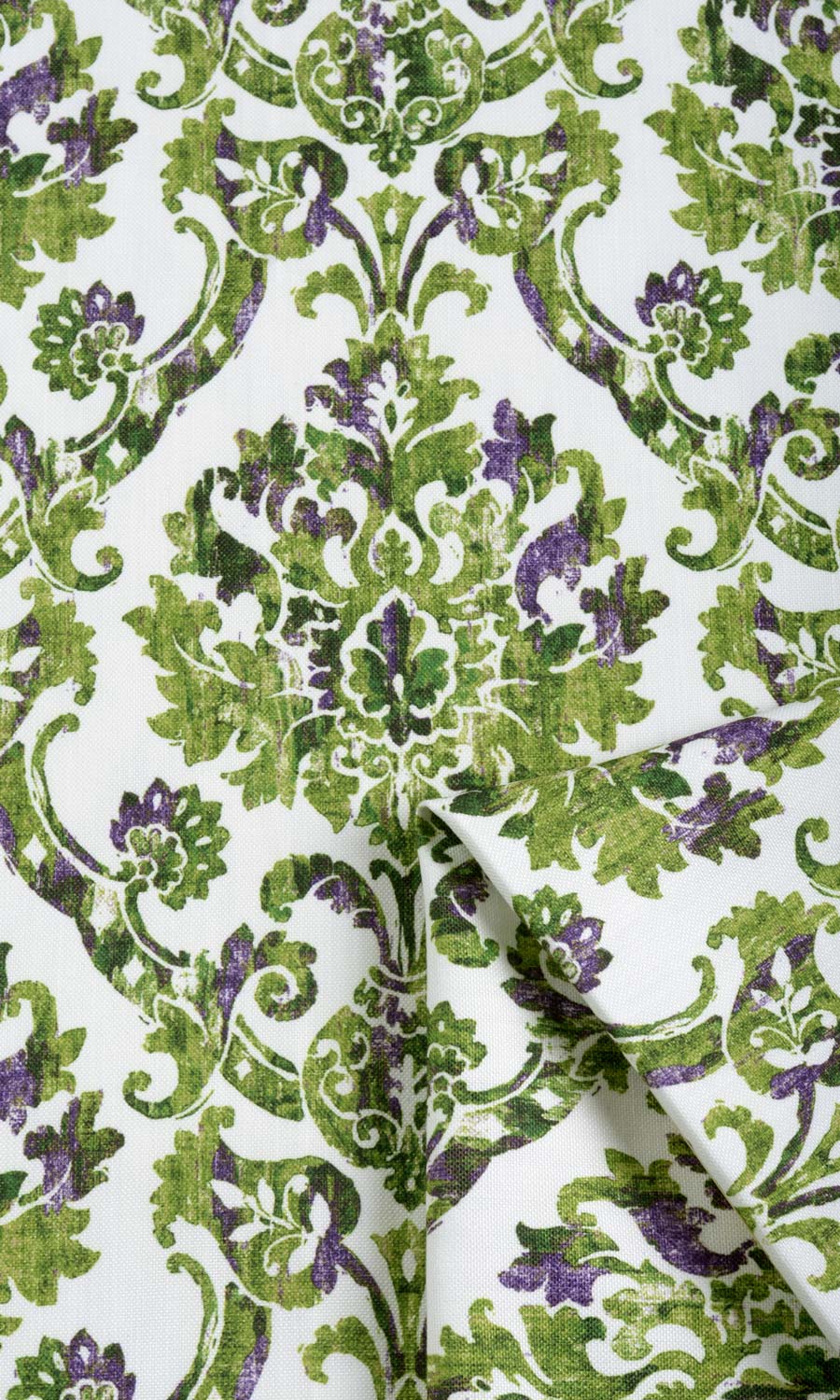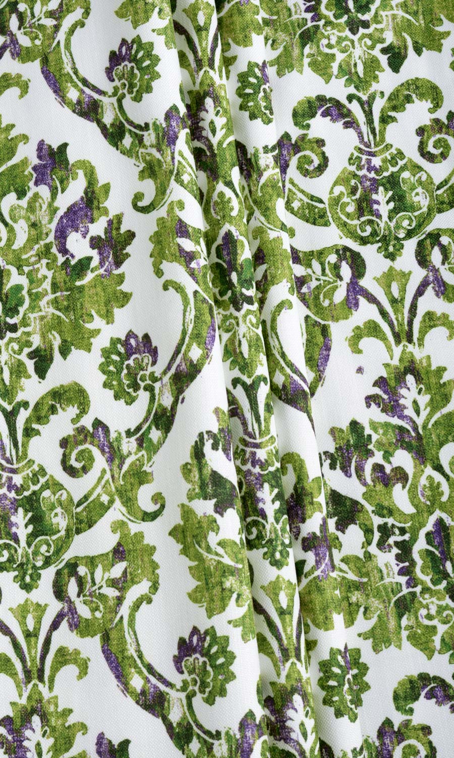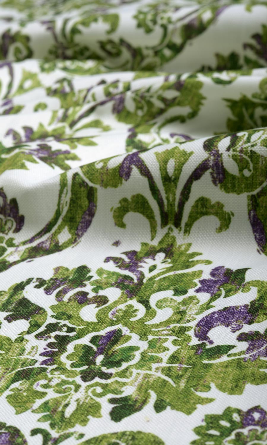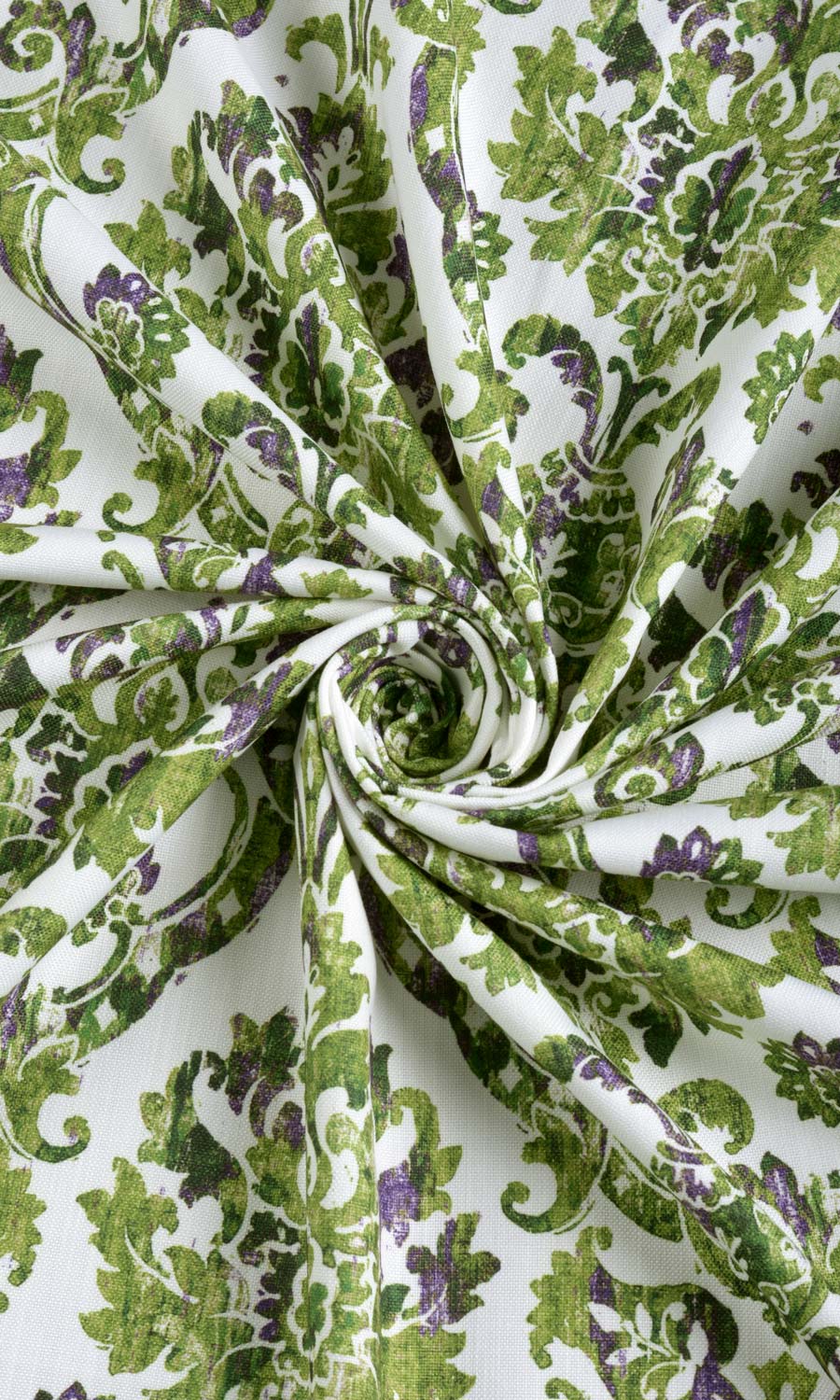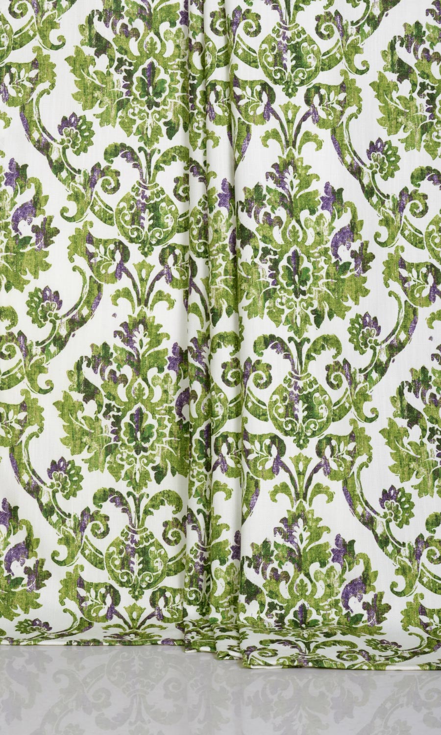 'Mystic Rage' is an oversized damask print fabric where time-honored design meets modern flair. The expansive damask pattern retains its classic charm while the vibrant green tones add a refreshing, up-to-date edge. It can be the finishing touch of an eclectic living room, a special feature of a boho bedroom or the fitting adornment of a grand door owing to its scale.