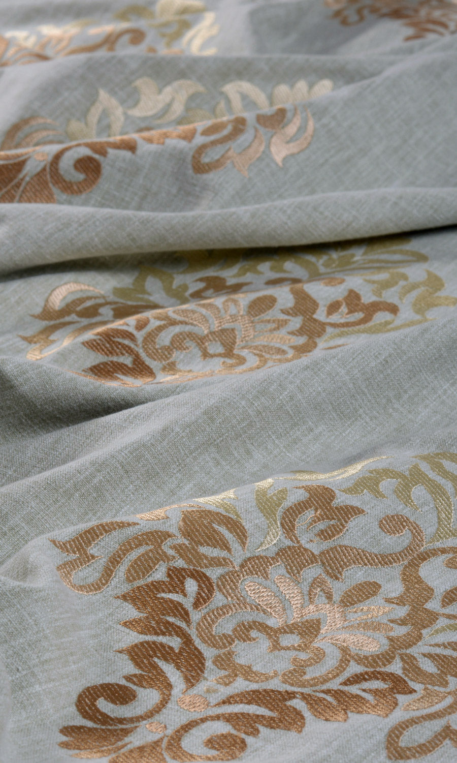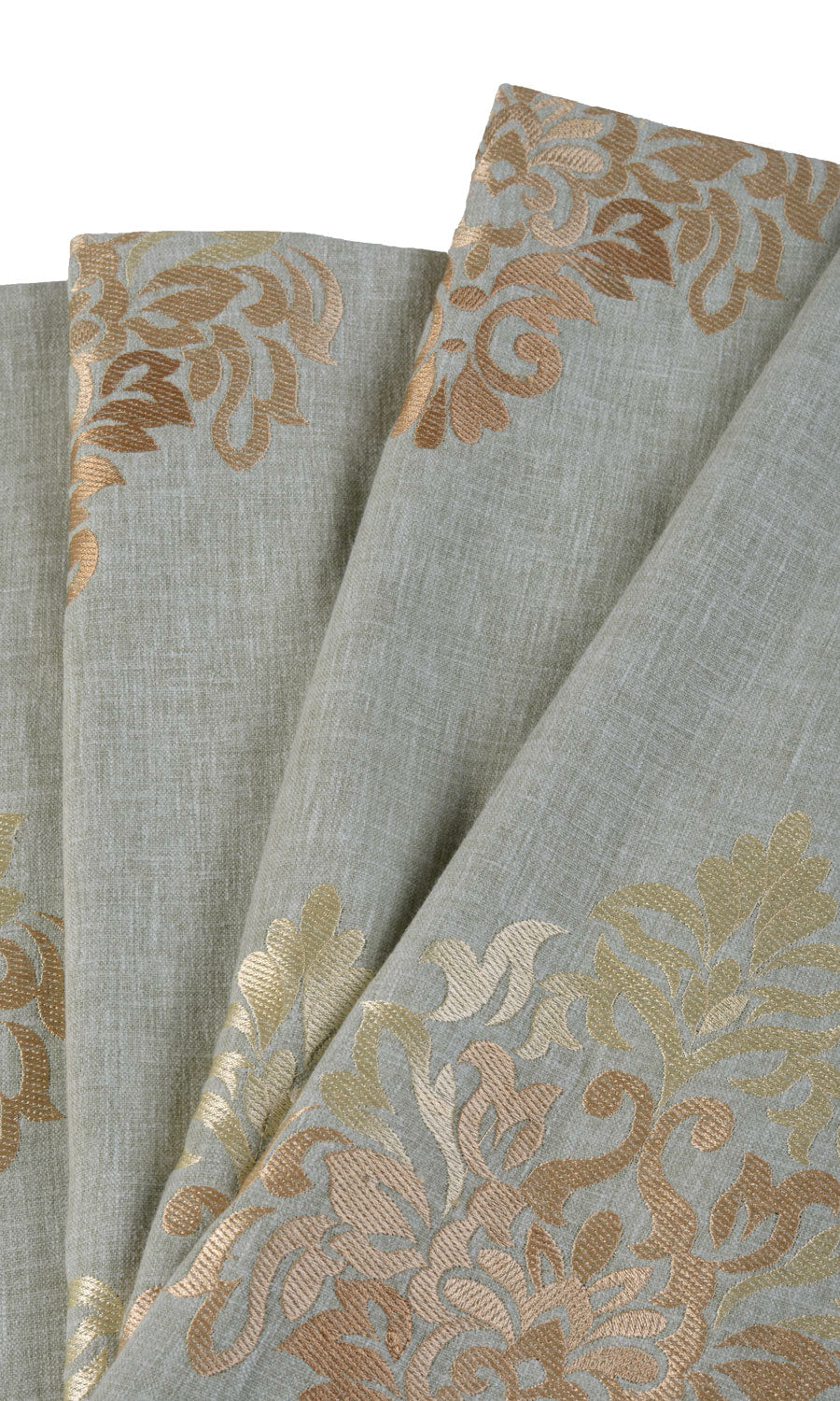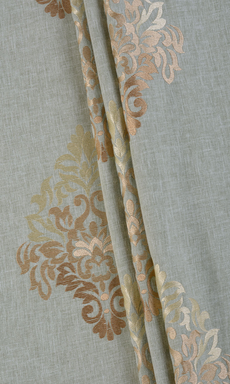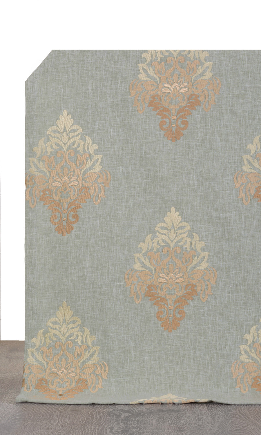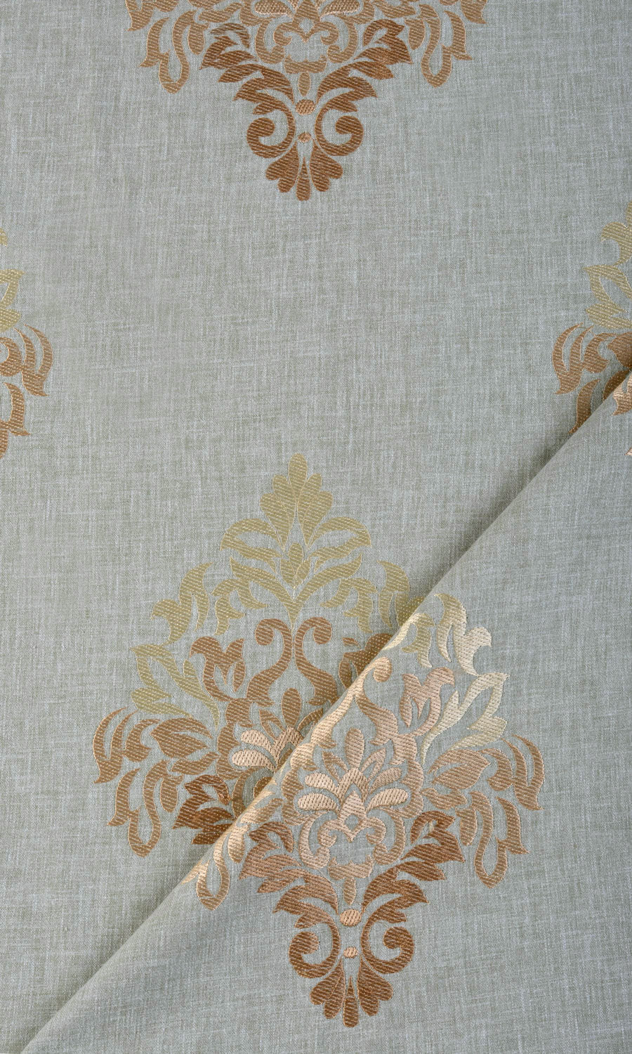 'Northern Fields' portrays the regal elegance of damask and offers a modern twist with its muted hues. Dress the windows of an embellished traditional/transitional living room or an eclectic moody bedroom with its stately themes and burnished yellows.