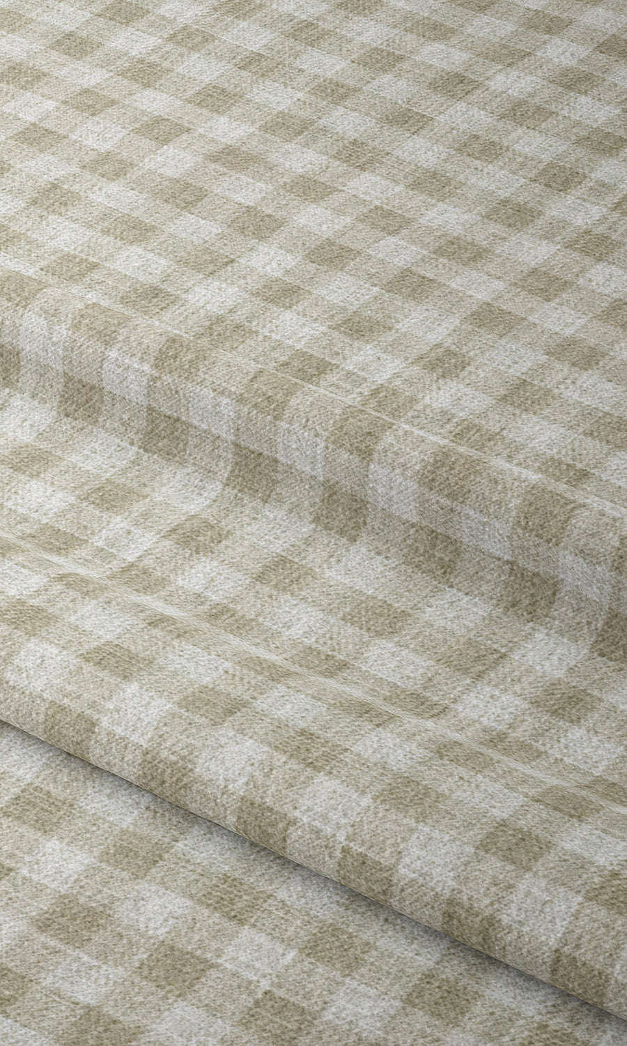 'Ollon' blends good old gingham with a modern pared-back palette to offer a fitting finishing touch to modern rustic spaces. Its light neutral hues and countrified motif can complete your farmhouse kitchen or cottagecore haven in style. Its clean lines and neutral tones carry a minimalistic appeal that makes it a suitor to modern pared-back homes too.