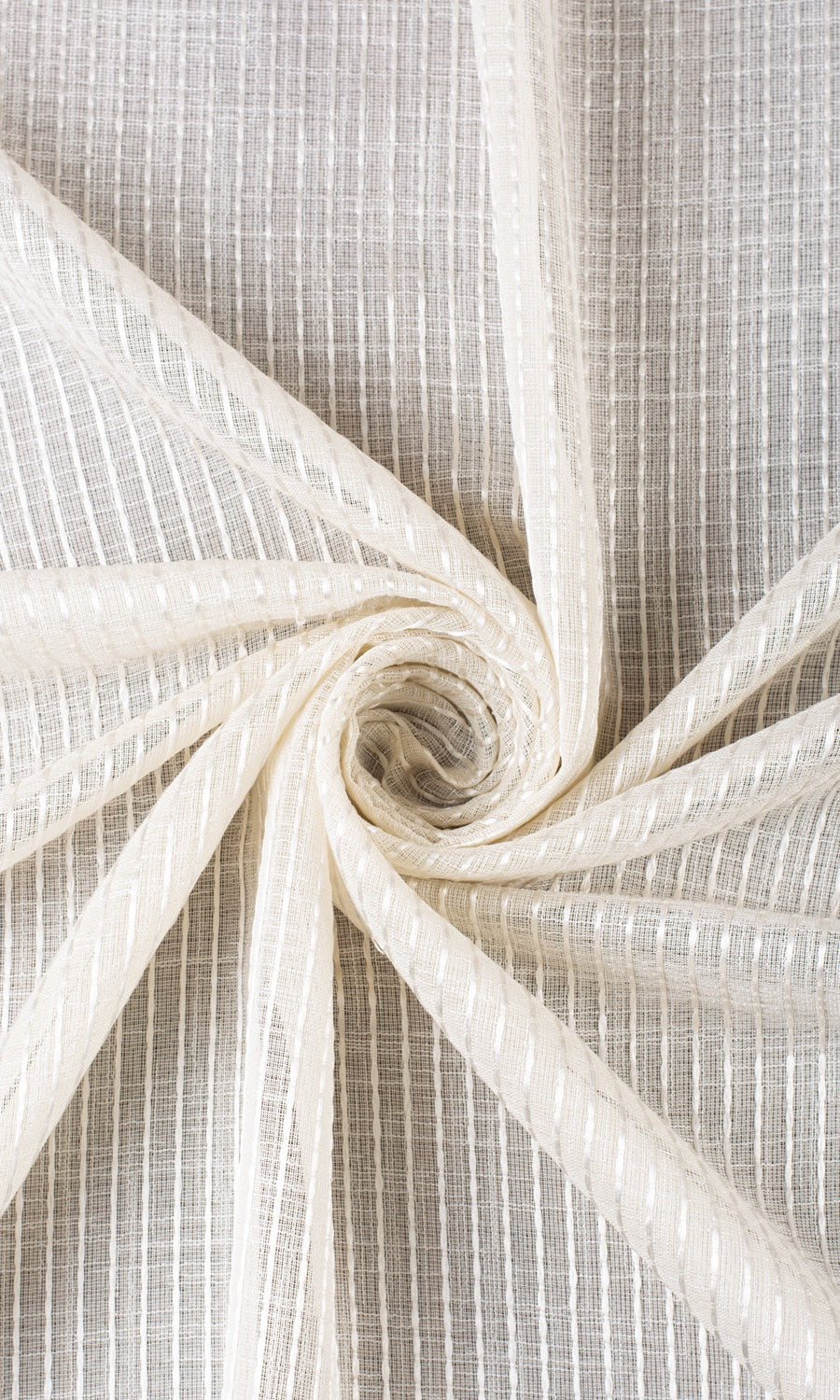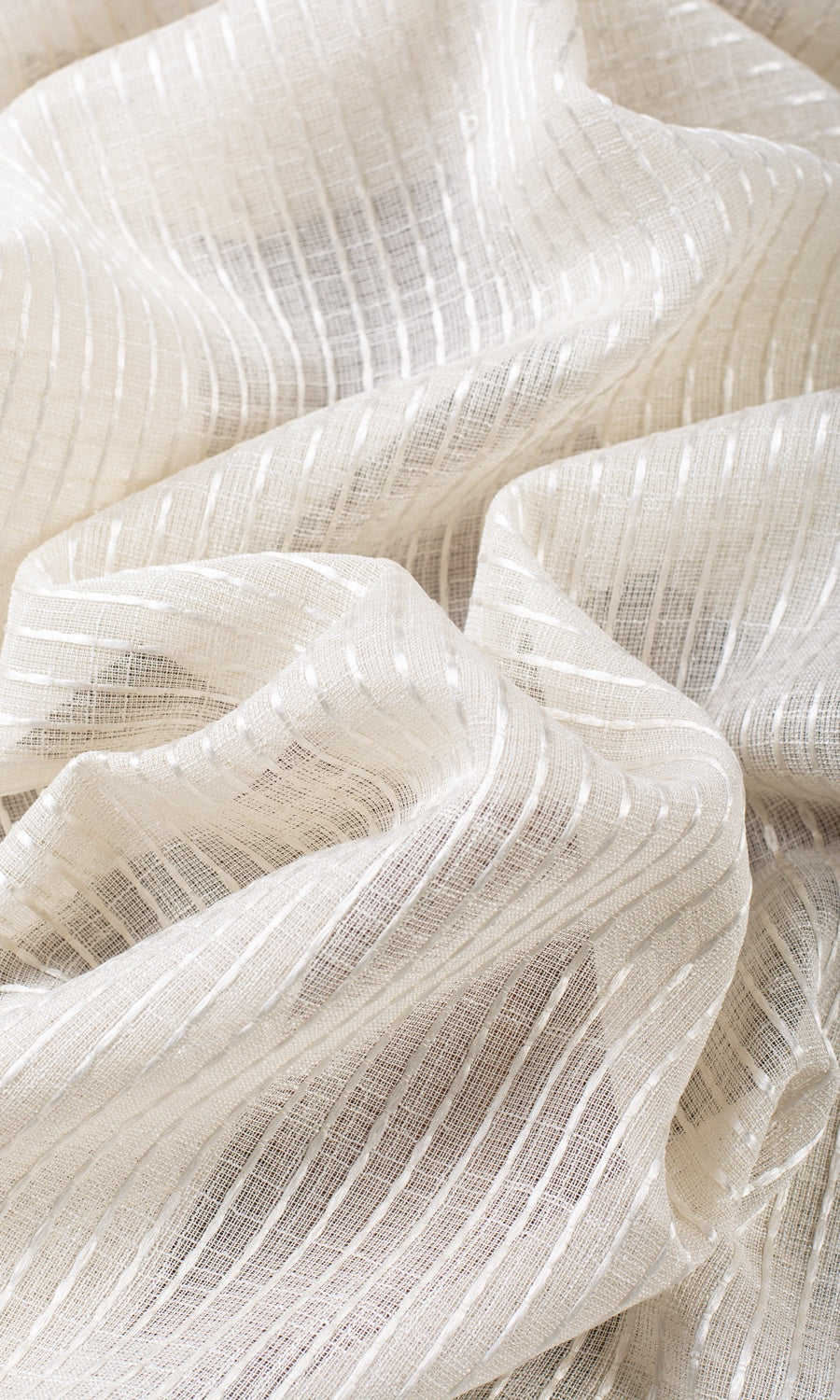 Light as a breath and patterned with tactile woven stripes, 'Orlena' brings a poetic quiet to any room it graces. Its barely-there translucence allows daylight to drift in gently, casting a serene glow while keeping the world outside. Perfect for minimalist spaces, coastal homes and country cottages, this creamy beige sheer can be the final touch for any space that loves a touch of delicate texture and lace.