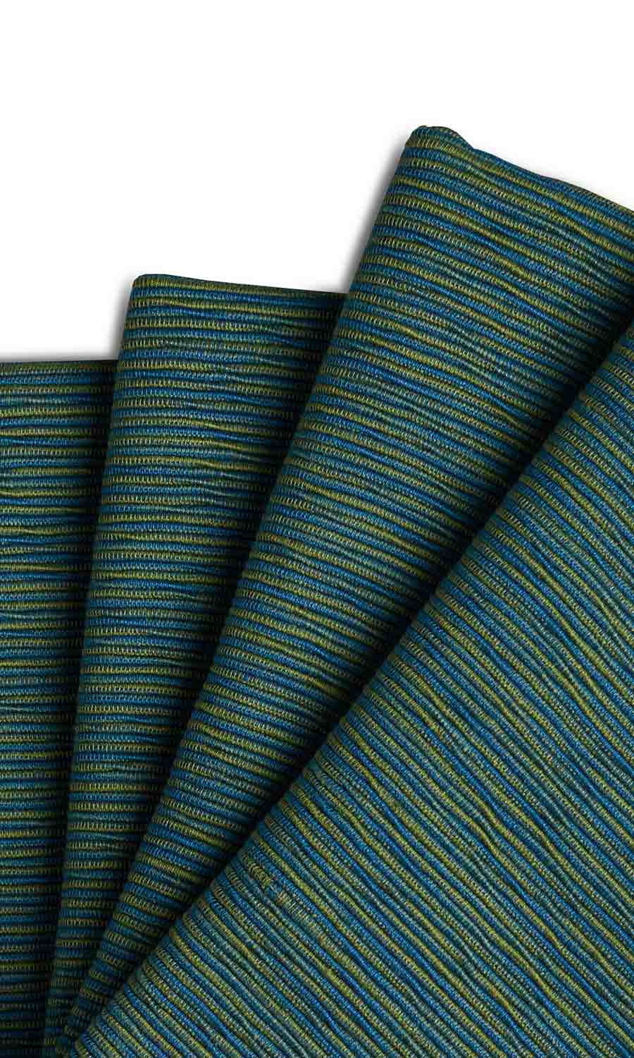 - The bright palette of blue interwoven with green
