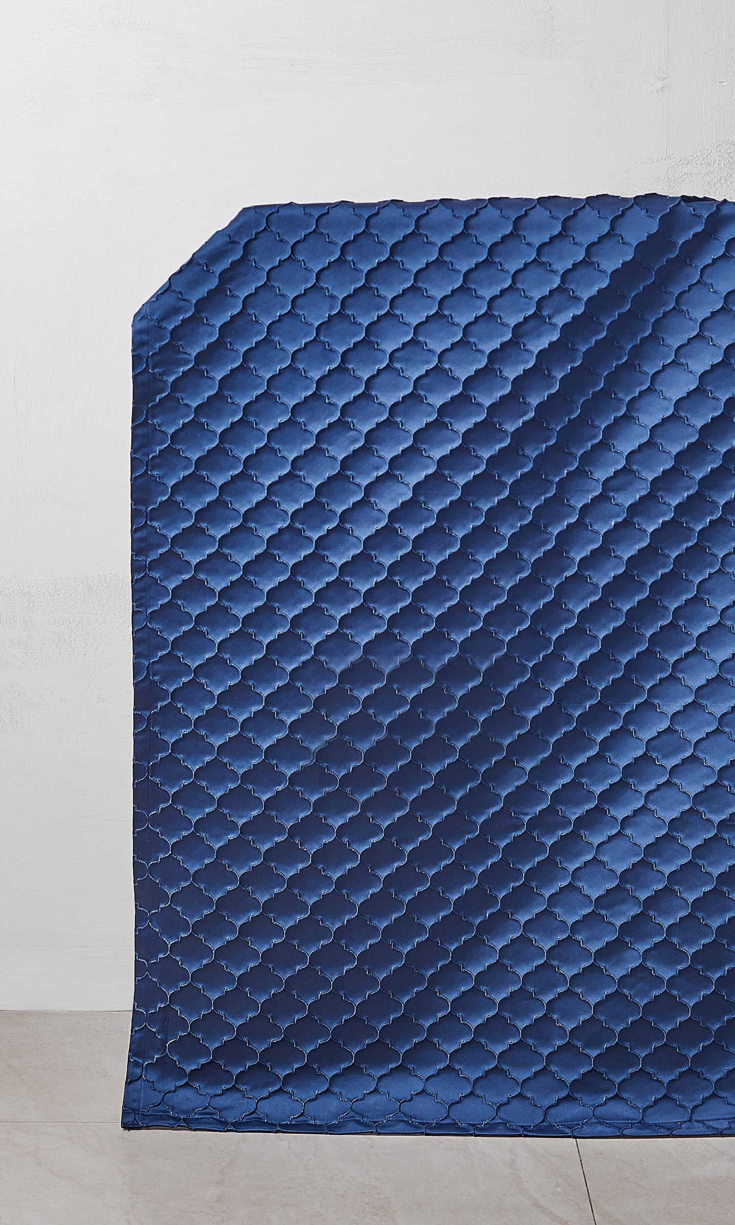 'Placid Shade' is a one-of-its-kind fabric that offers a refined elegance - a plain blue that's not quite plain and an all-over pattern that evades bustle! This deep blue fabric reimagines the Moroccan trellis motif sans its vibrance and busyness. Add to a formal room to amp up its dressiness, a pattern-loaded room to notch down its visual energy or a pattern-starved room for a subtle indulgence and textural variety.