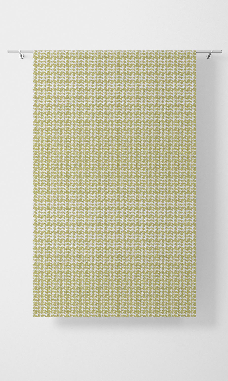 'Platinum Glo' reinvents tradition with a modern twist — its structured checkered design is crafted from a mosaic of petite houndstooth motifs, adding texture and depth to the fabric. The chartreuse green infuses a lively charm, while the rhythmic pattern maintains a composed elegance. It's a pattern that feels both tailored and untamed — perfect for homes that embrace the unexpected while staying effortlessly refined.
