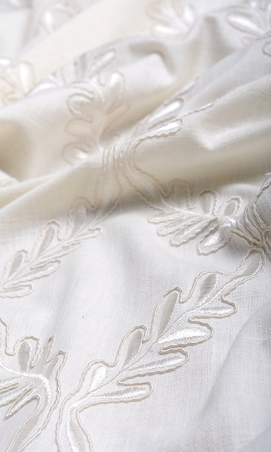 - Its tone-on-tone warm whites and lustrous embroidered accents that offer a quiet sophistication