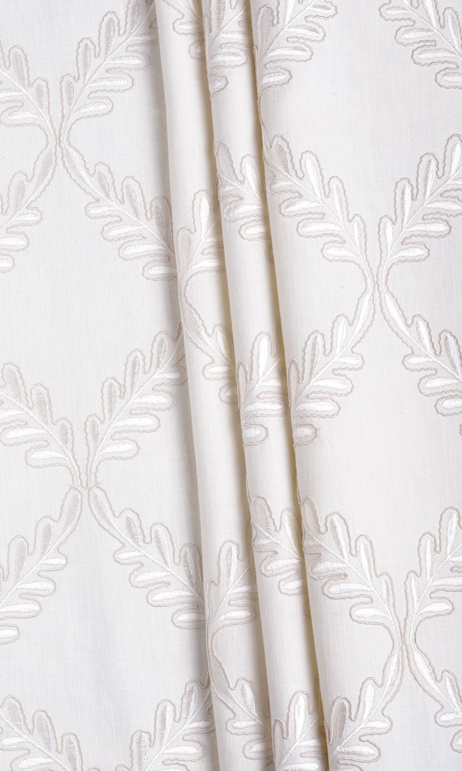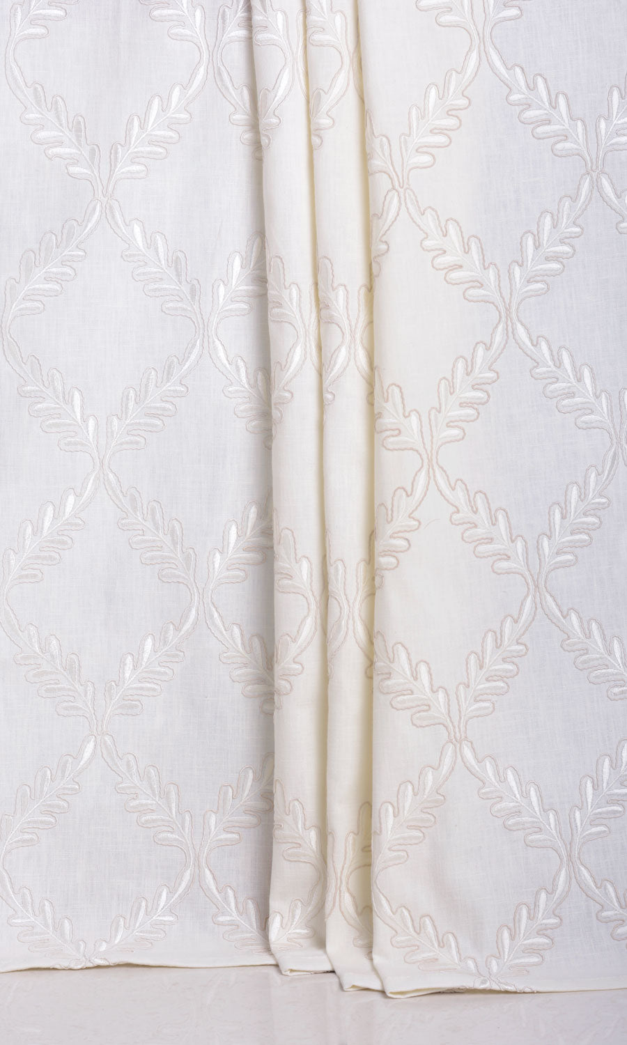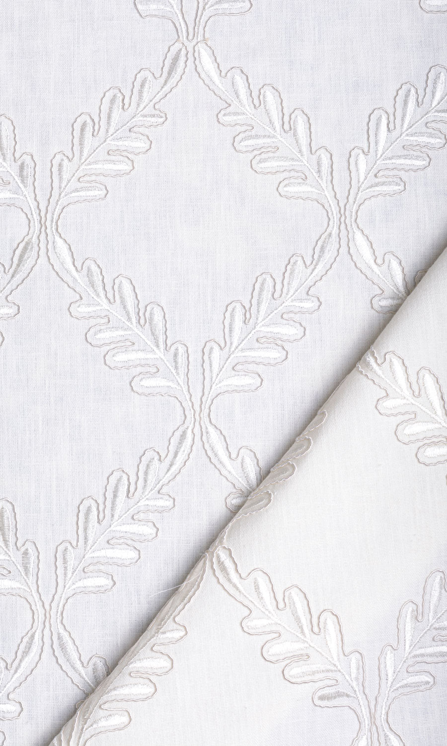 A modern rendition of a traditional design, 'Polar Heights' is a tale of many fusions. It merges the soft contours of botanical motifs with the sharp lines of a diamond lattice, the rustic slubs of linen with the polished sheen of viscose, and the simplicity of natural fibres with the practical convenience of high-quality polyester. With just enough tactility to catch the eye but not too much to overpower the design, this white linen-blend fabric proves its candidature for minimalist interiors, quiet country homes and nature-inspired themes.