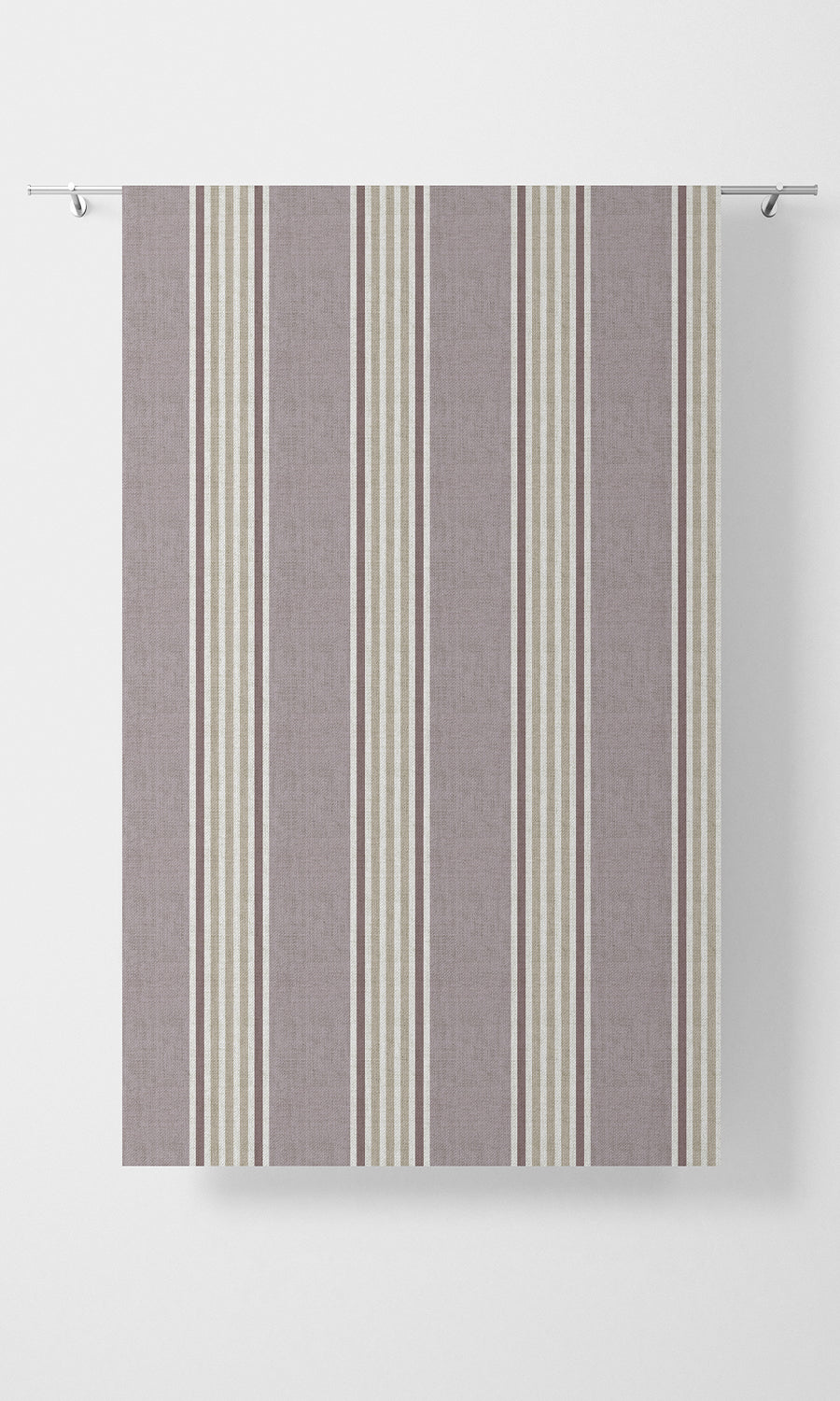 Featuring a delightful mix of wide and narrow stripes, and dark and neutral colours 'Puritan Snow' taps into the power of contrast to make a space alluring. Its white and beige, accented by mauve, is a delightful combination of colours that can make its impact without being too loud. And the stripes not only lend a neutral motif that can mingle with any pattern mix but also accentuate the height of the room by wooing the eye upward along their vertical lines.