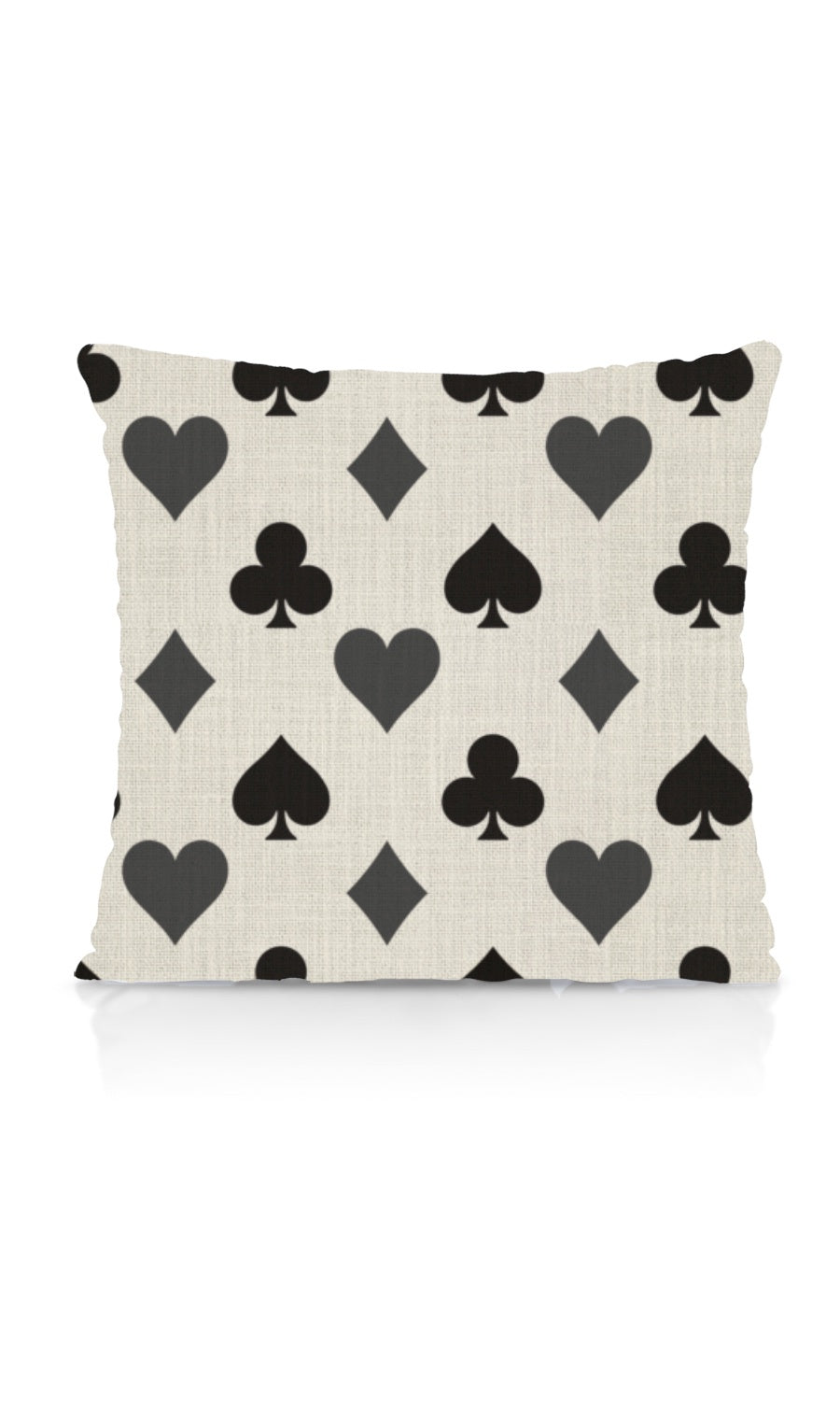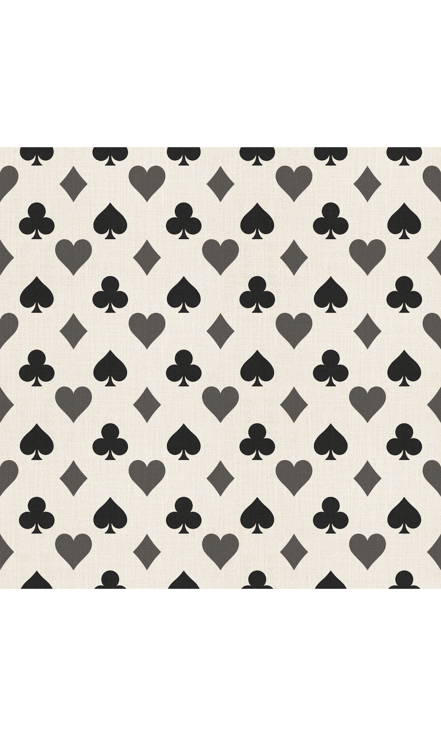 A jackpot of style, this poker print fabric brings the thrill of the game to your decor. Featuring the classic and iconic motifs of hearts, spades, clubs, and diamonds, this bold and graphic fabric turns any room's decor into a winning hand. With its suave, striking design, 'Quiet Game' is easy to mix and match with various styles, bringing a touch of casino flair to your game rooms, lounges, man caves, or home bars.