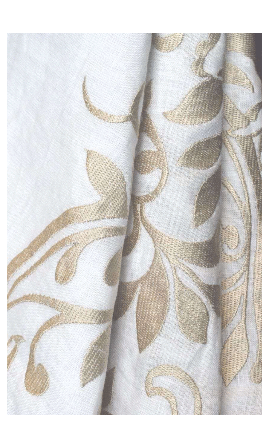 - The contemporised taste of its modernised floral embroidered pattern dipped in a neutral palette of white and beige