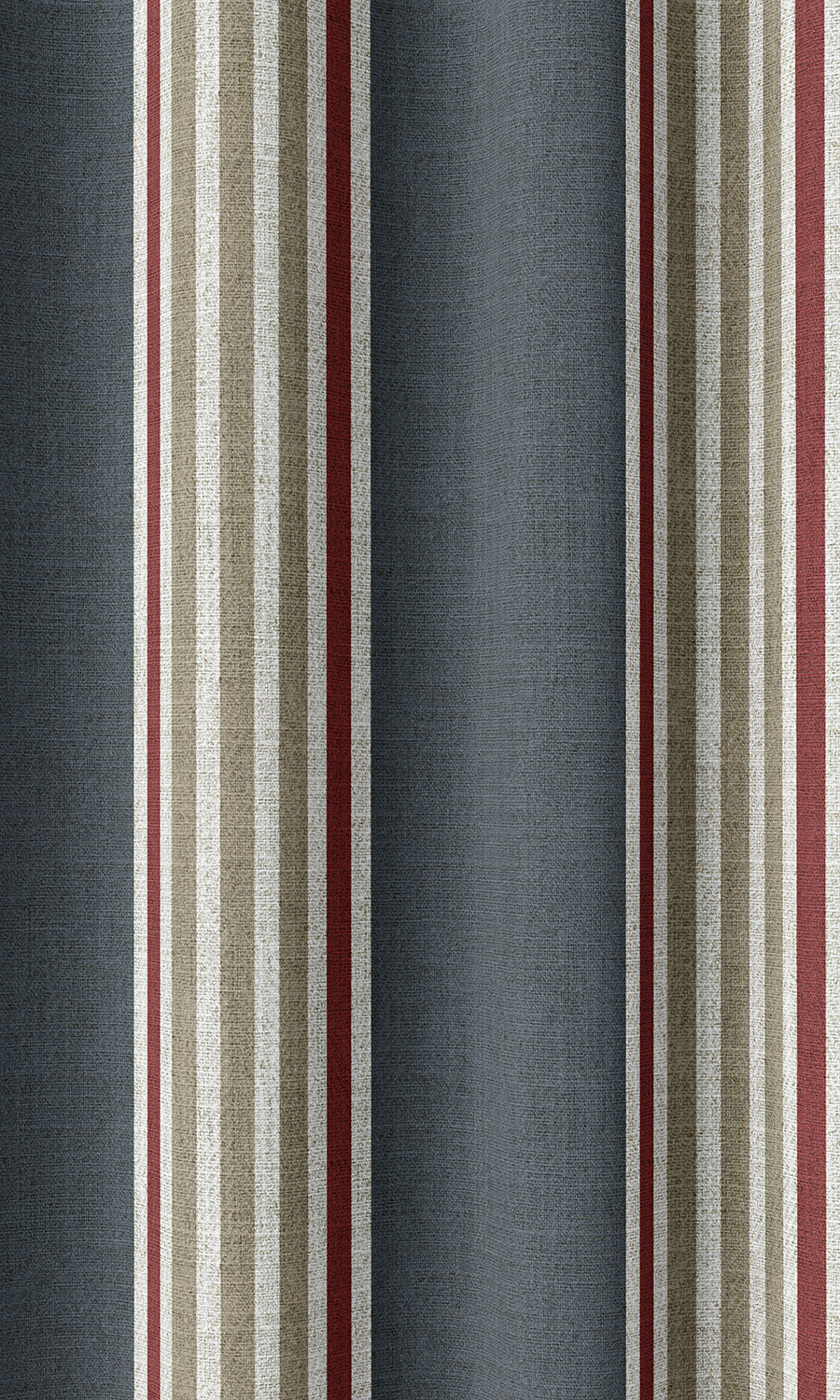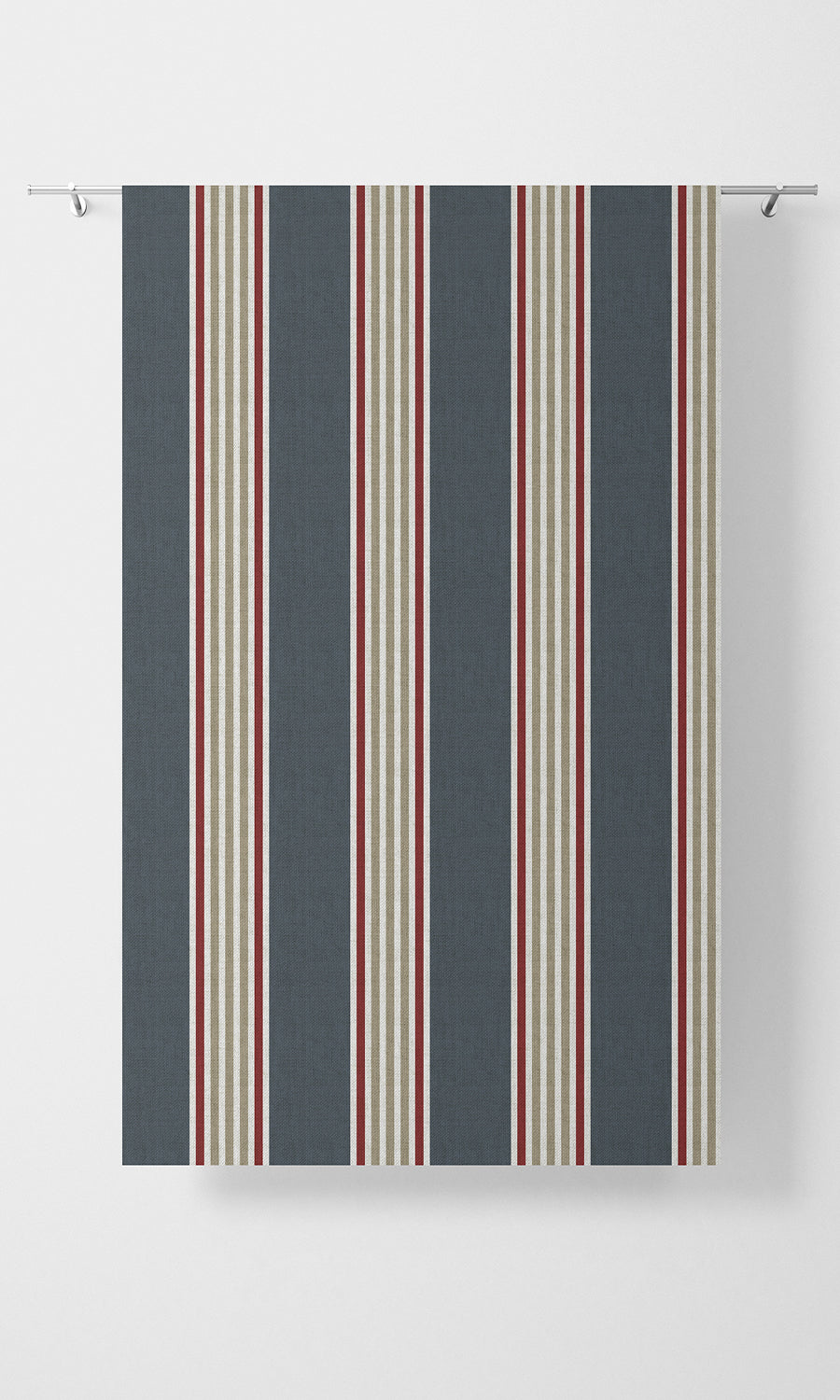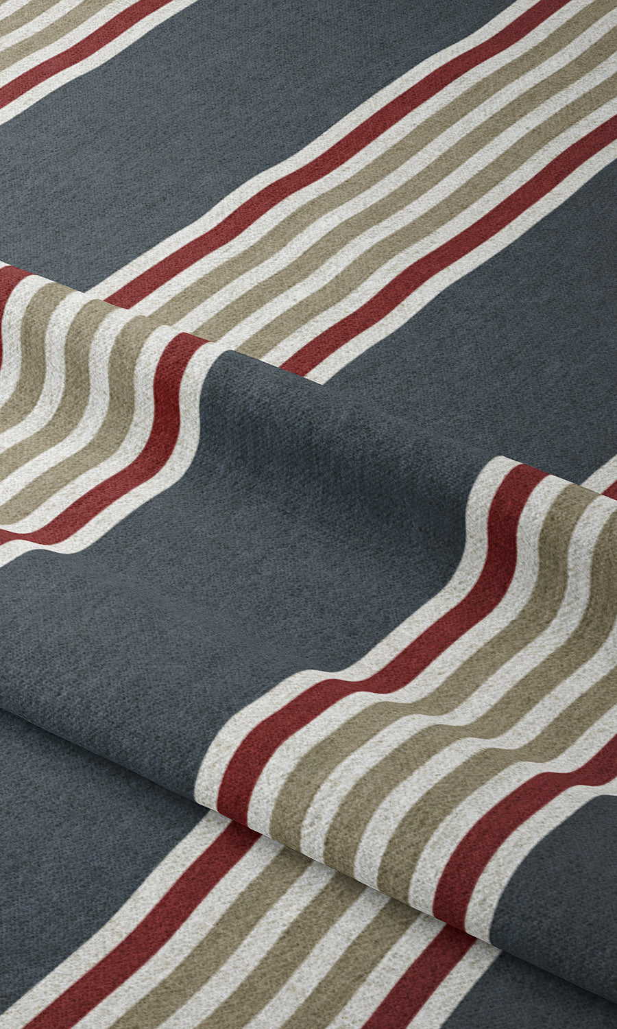 Featuring a delightful mix of wide and narrow stripes, and dark and bright colours 'Redwood' taps into the power of contrast to make a space alluring. Its grey-ish blue accented by white, beige and red is a delightful combination of colours that can make their impact without being too loud. And the stripes not only lend a neutral motif that can mingle with any pattern mix but also accentuate the height of the room by wooing the eye upward along their vertical lines.