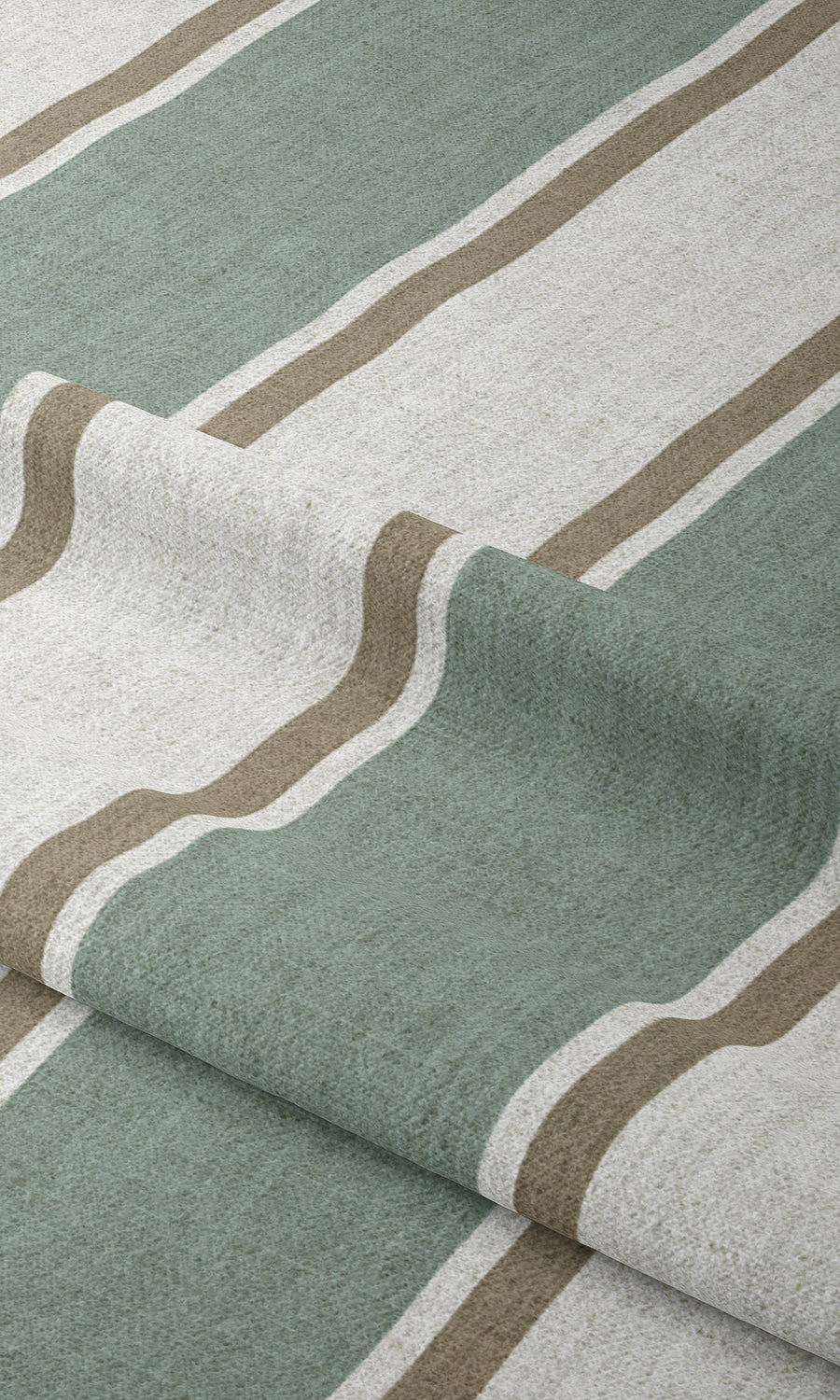Classic yet unpretentious, 'Reliable Sea' finds harmony in contrast. The soft wash of duck egg blue lays the foundation, while the crisp brown pinstripes weave in subtle contrast. The mix of bold and fine stripes lends a sense of movement, making it an easy fit for spaces that blend the tailored with the relaxed — think breezy coastal homes, rustic sunrooms, or breezy casual living spaces.