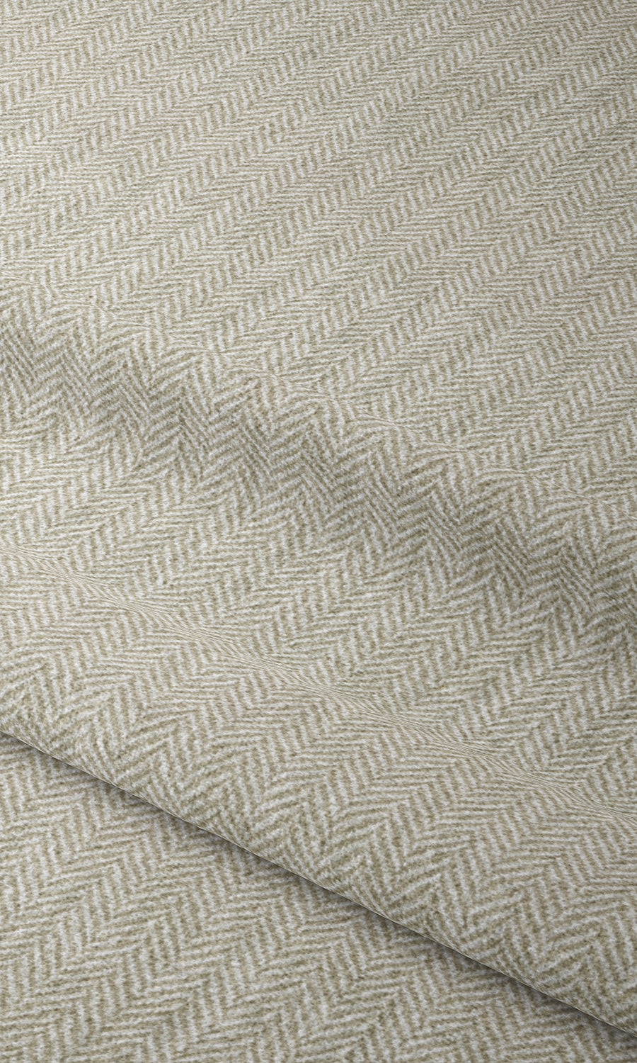 'Renen's herringbone print is a fresh, modern take on a time-honored pattern. The interwoven design adds visual texture and a sense of movement to the interiors. With its beige-white print, this fabric leans into a sophisticated neutral palette, making it a versatile choice for contemporary, modern coastal, and minimalist interiors. Add this piece to a coastal decor style loft to complement the organic hues, to Scandinavian-inspired spaces for subtle pattern play, or to casual living rooms to create a relaxed yet polished atmosphere.
