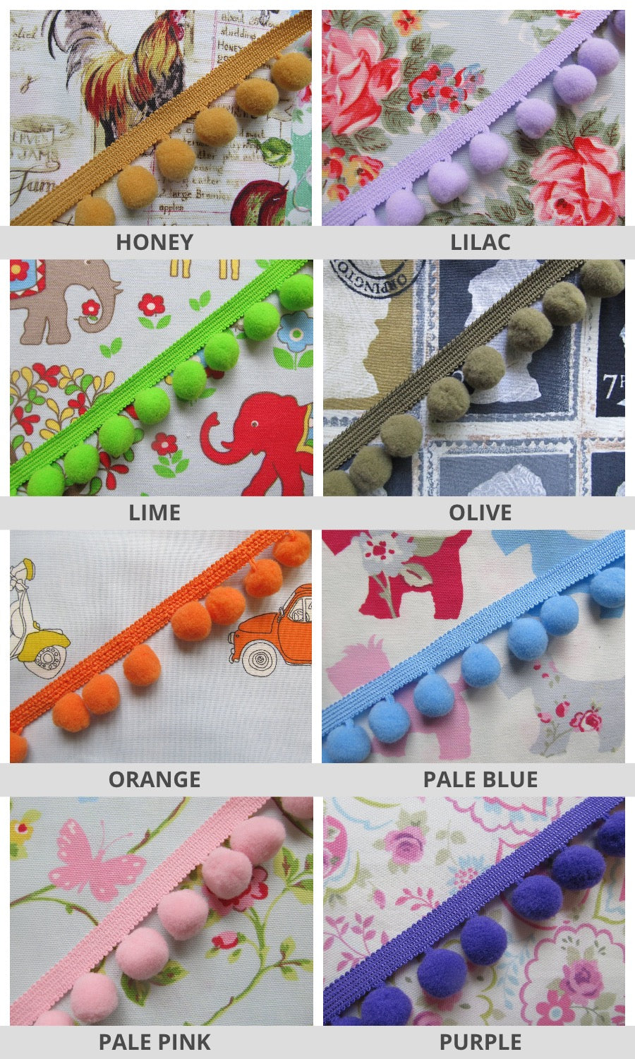 Available in a range of 21 colors, our jumbo pom pom range features the largest size on offer, approximately 34mm wide, with each bobble measuring 20mm across.