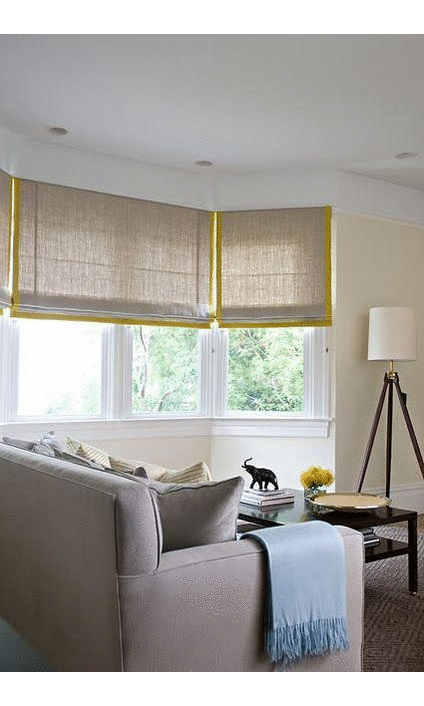 For a 'Border' position, the 38 mm wide ribbon trim is handstitched at edge on three sides (bottom, and left and right hems of roman shades) for a delightful effect.