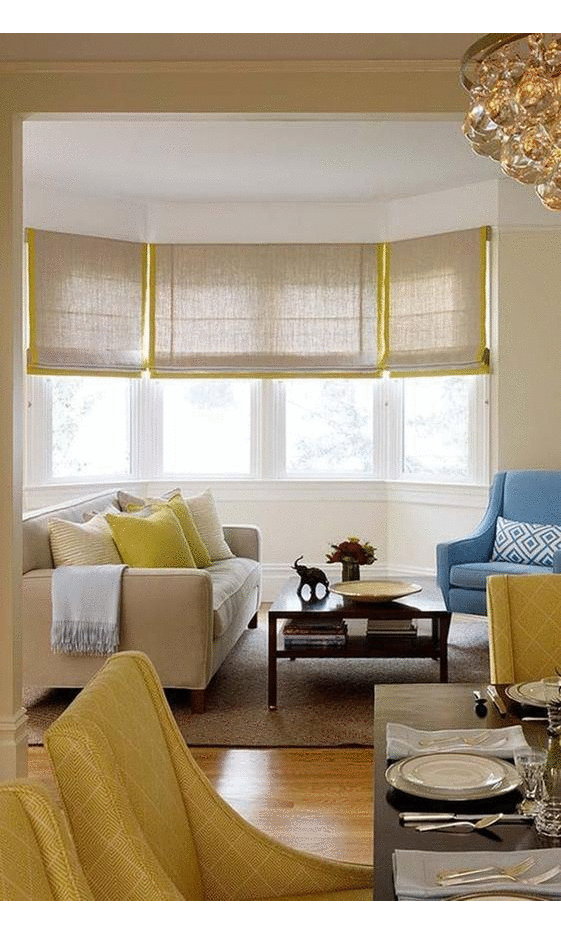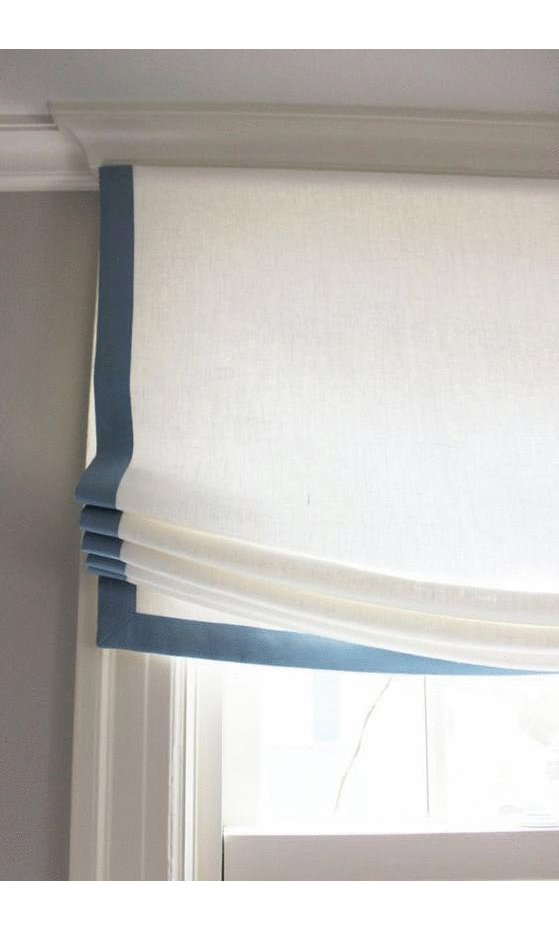 For a 'Border' position, the 38 mm wide ribbon trim is handstitched at edge on three sides (bottom, and left and right hems of roman shades) for a delightful effect.