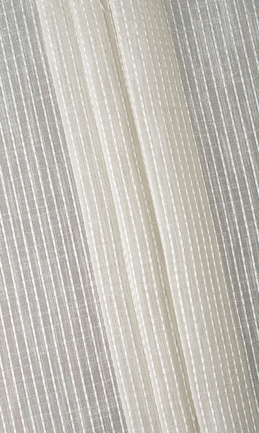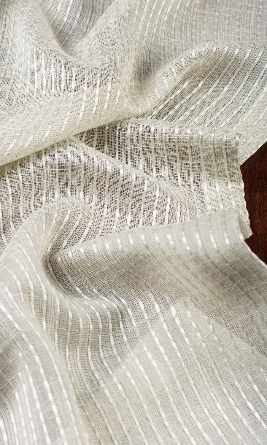 Light as a breath and patterned with tactile woven stripes, 'Rosalyn' brings a poetic quiet to any room it graces. Its barely-there translucence allows daylight to drift in gently, casting a serene glow while keeping the world outside. Perfect for minimalist spaces, Scandi homes and modern apartments, this soft gray sheer can be the final touch for any space that loves a touch of delicate texture and lace.