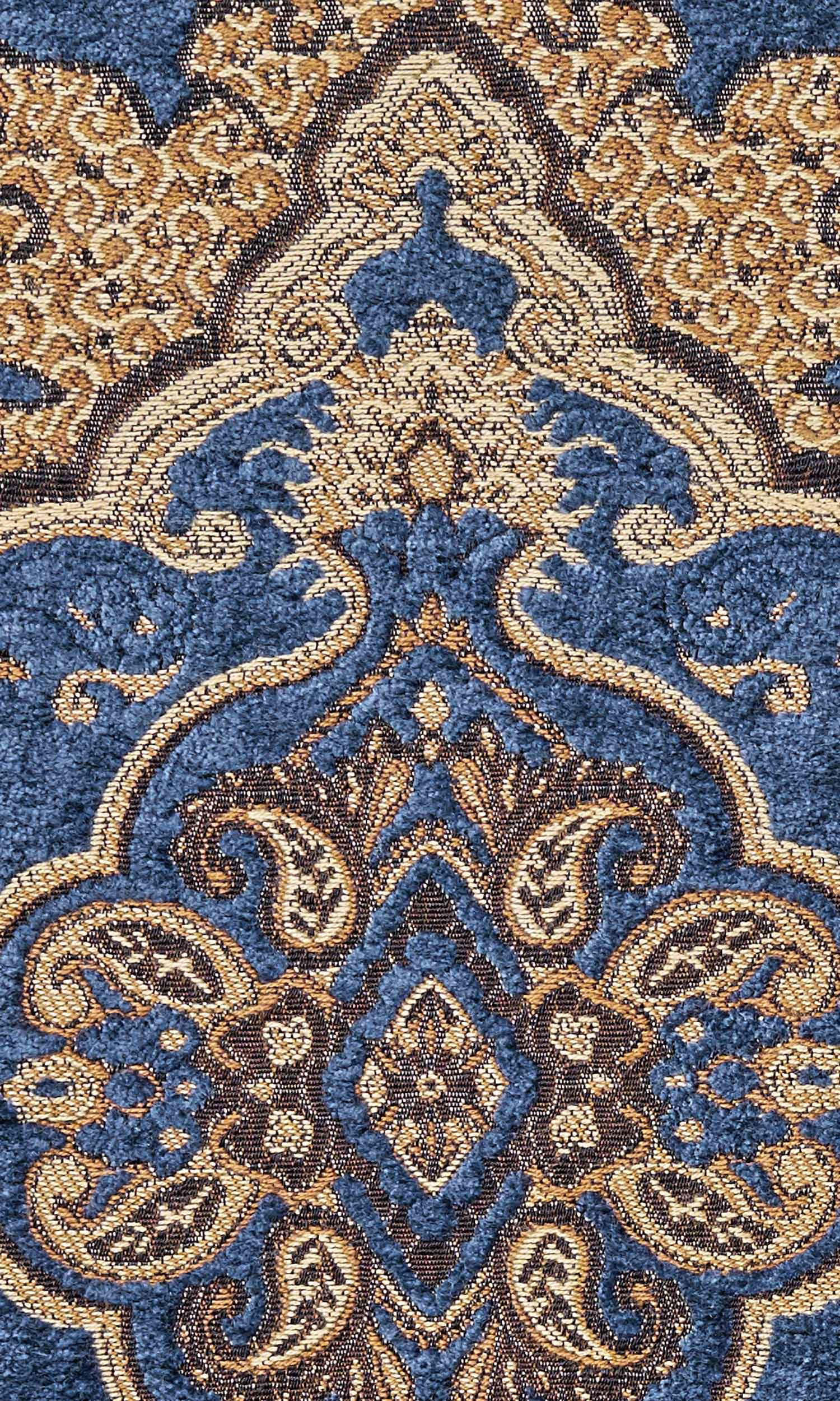 If you are looking for a statement piece for your traditional living room or a golden accented piece to nod to the brass details of your eclectic home, our stunning damask 'Ryder' will see you there. Its all-over layout of large-size damask prints etched out in an intricately detailed filigree pattern is ideal for homes that thrive on classical themes, ornate details and bold patterns. But its glamorama factor lies in its classical blue-gold palette that unfolds on the deep texture of an ever-resplendent velvet.